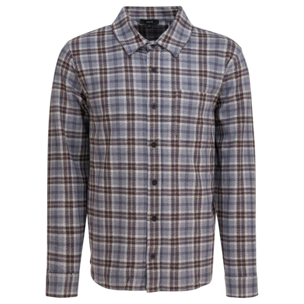Cette surchemise Vince pour homme allie l’esprit utilitaire d’une veste légère à l’élégance d’une chemise contemporaine. Confectionnée en twill de coton mélangé à la surface brossée, elle offre douceur et confort tout en conservant une structure nette. Son motif à carreaux, sa fermeture boutonnée et sa poche plaquée poitrine renforcent son style casual raffiné. Les poignets boutonnés et la base en bord-côte assurent un maintien optimal, faisant de ce modèle une pièce polyvalente idéale pour la mi-saison.