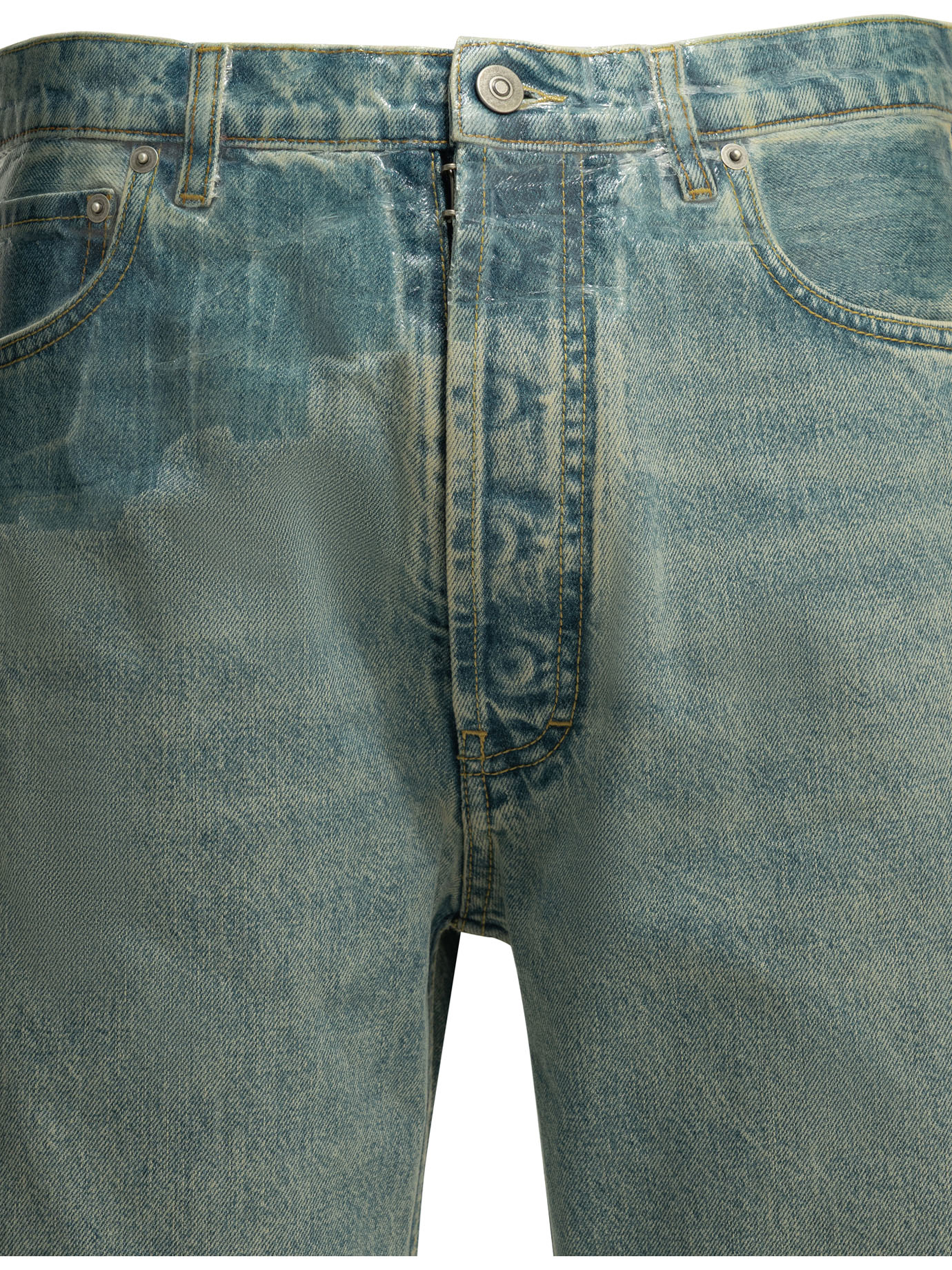 caractéristique spéciale : bande de ruban transparent (transparent tape) appliquée au niveau de la taille, modifiant la texture et l’aspect visuel du denim pour un rendu industriel sophistiqué