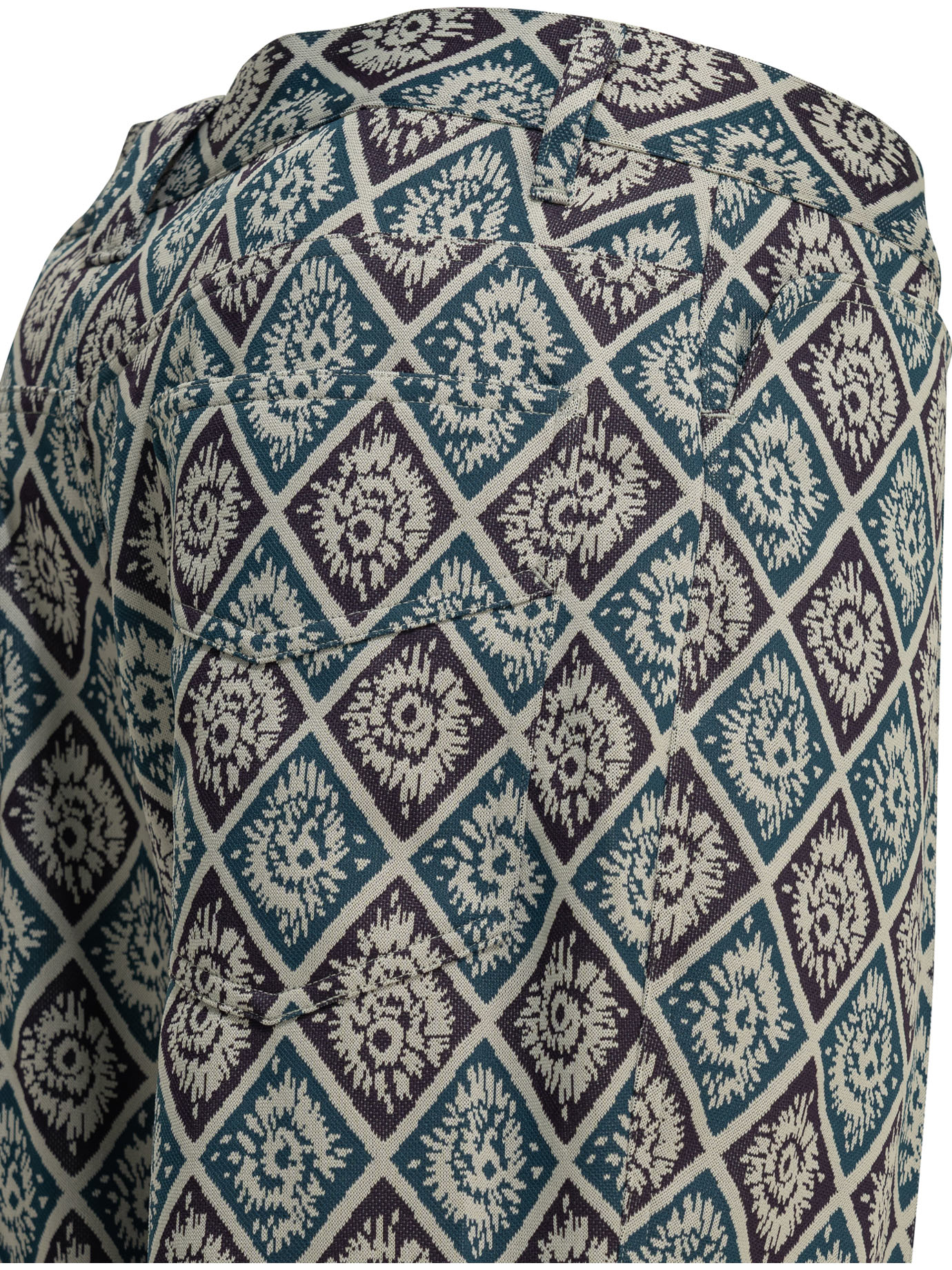 finition : poches latérales et arrière intégrées avec précision pour respecter l’harmonie du motif jacquard