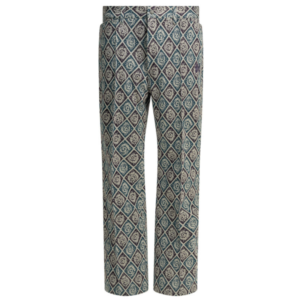 « Needles » pantalon homme bleu en de polyester à motif intégral et coupe évasée