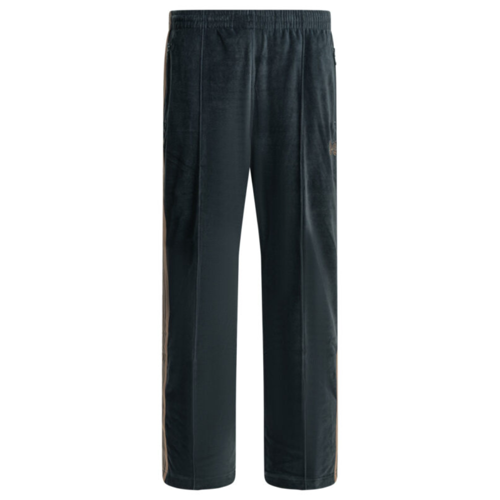 cette pièce de la maison needles pour homme est un vêtement de prêt-à-porter au design luxueux et texturé conçu pour la saison printemps-été 2026. fabriquée au japon, elle est confectionnée dans un velours de première qualité associant le coton (75 %) et le polyester (25 %), offrant une structure souple, une main soyeuse et une brillance subtile propre aux standards de la haute manufacture japonaise needles. sa silhouette se distingue par sa jambe droite au bas légèrement évasé et sa ligne fluide, alliant l’esthétique sportswear vintage de la griffe à une élégance contemporaine idéale pour vos tenues de prestige quotidiennes. le design au coloris bleu acier présente une construction soignée avec la broderie emblématique du papillon (papillon embroidery), signature du prestige et de l’identité visuelle de needles. la structure inclut une taille mi-haute et des coutures linéaires épurées, garantissant une silhouette équilibrée, une grande liberté de mouvement et un confort de porter exemplaire. ce modèle allie parfaitement la noblesse d’une fibre naturelle sélectionnée à une ingénierie de textile velours de luxe, constituant une pièce de collection indispensable pour votre vestiaire.