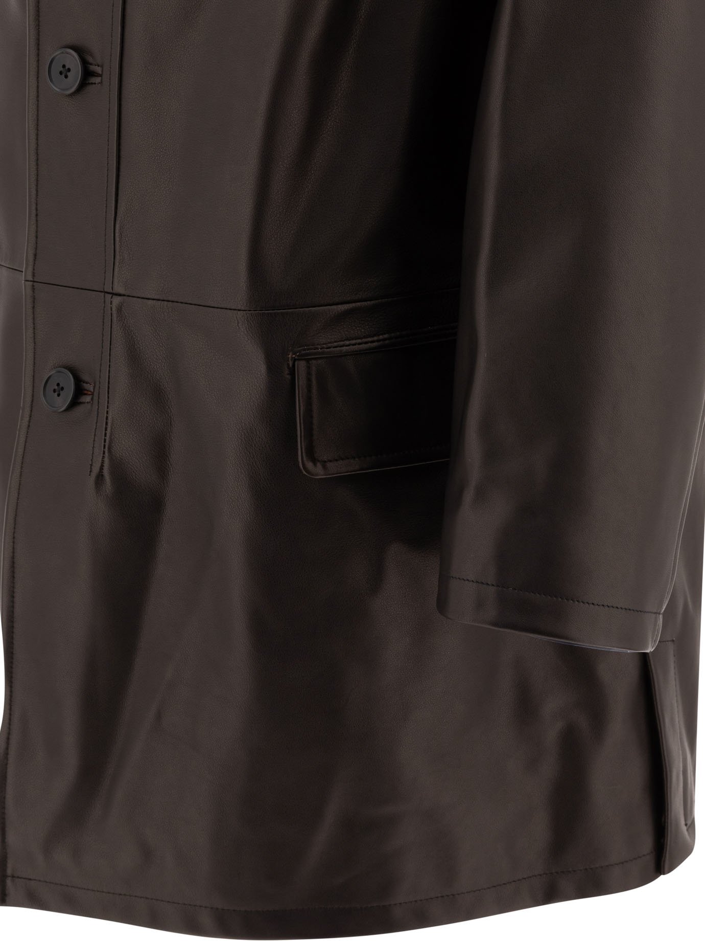 Ce manteau en cuir signé Kaptain Sunshine met en avant l’élégance intemporelle et le savoir-faire japonais. Réalisé en cuir de haute qualité, il associe robustesse, confort et style raffiné. Sa teinte marron profonde en fait une pièce forte du vestiaire masculin, idéale pour compléter des tenues automne/hiver avec caractère et sophistication.