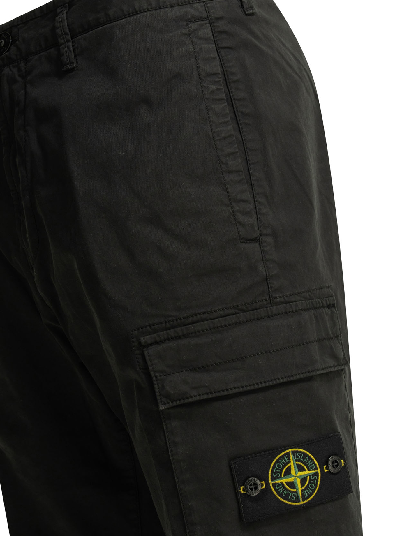 logo : badge stone island compass emblématique boutonné sur la poche cargo latérale gauche