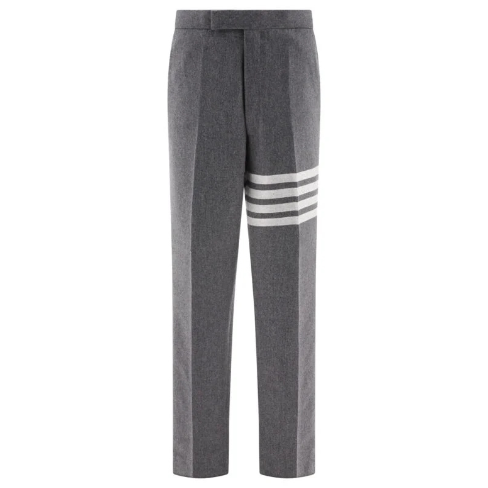 Le pantalon 4-Bar de Thom Browne illustre l’élégance contemporaine et le raffinement de la maison new-yorkaise. Confectionné dans un mélange de laine et de cachemire, il allie confort, chaleur et souplesse. Sa coupe regular et sa taille basse assurent une allure moderne et structurée, tandis que sa teinte grise souligne son caractère intemporel. Fabriqué au Japon, ce modèle reflète un savoir-faire de haute qualité et le style distinctif de Thom Browne.