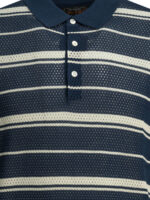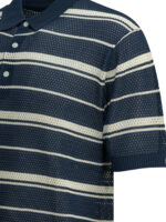 « Beams plus » polo homme bleu maille de coton rayé à col boutonné