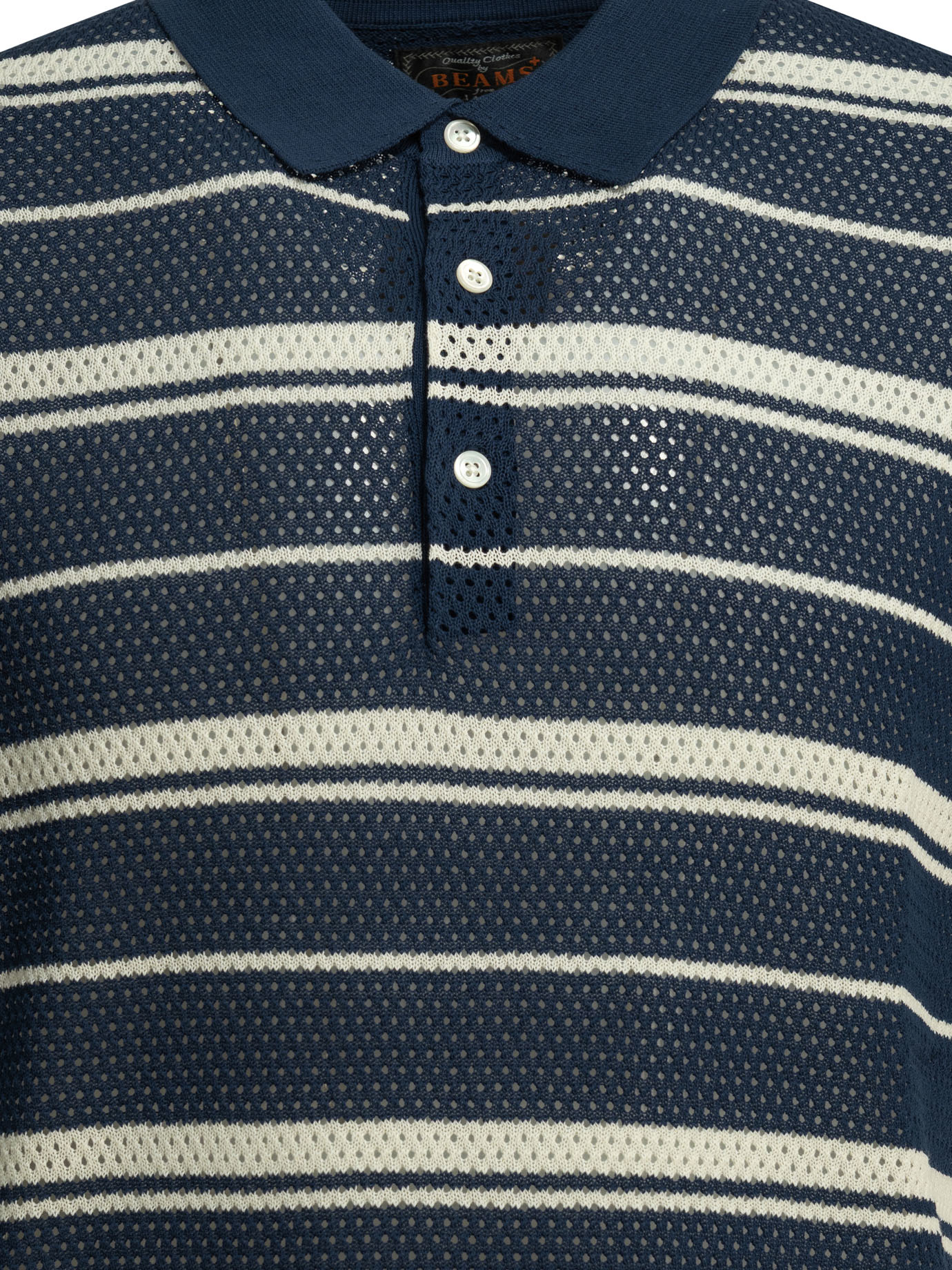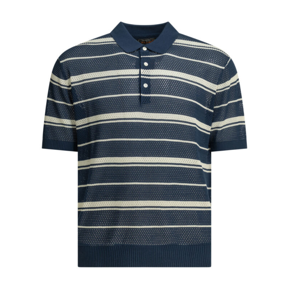 cette pièce de la maison beams plus pour homme est un vêtement de prêt-à-porter au design textural et aéré conçue pour la saison printemps-été 2026. fabriquée en chine, elle est confectionnée dans un tricot de coton de première qualité (100 % coton avec finitions en mélange coton, nylon et élasthanne), offrant une structure en mesh respirant, une main douce et une légère transparence propre aux standards de la manufacture beams plus. sa silhouette se distingue par son motif à rayures horizontales et sa coupe décontractée, alliant l’esthétique sportswear vintage de la griffe à une sophistication estivale idéale pour vos tenues de prestige quotidiennes. le design au coloris bleu présente une construction soignée avec une maille filet qui favorise la circulation de l’air, signature du prestige et de l’identité visuelle de beams plus. la structure inclut une patte de boutonnage centrale à trois boutons et des bordures côtelées, garantissant une silhouette équilibrée, une grande liberté de mouvement et un confort de porter exemplaire. ce modèle allie parfaitement la noblesse d’une fibre naturelle sélectionnée à une ingénierie de tricotage ajouré, constituant une pièce de collection indispensable pour votre vestiaire.