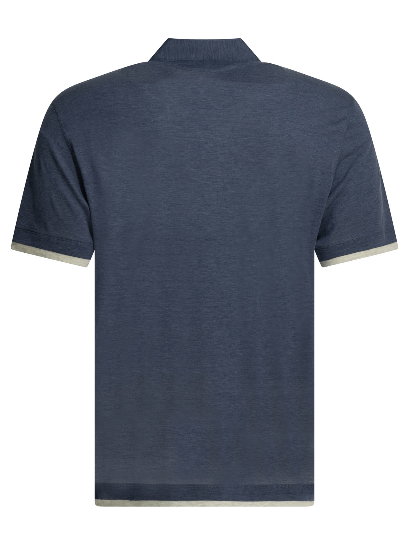 Ce polo à boutons de la maison Brunello Cucinelli pour homme est confectionné dans un jersey de luxe mêlant la brillance naturelle de la soie à la texture fluide et compacte du coton pour la saison printemps-été 2026. Ce modèle se distingue par sa construction « Faux Layering », où des inserts contrastés soulignent les profils pour créer un effet de superposition raffiné. La pièce adopte des codes empruntés à la chemiserie avec son col boutonné et sa patte de fermeture frontale. La silhouette régulière est complétée par des finitions soignées au bas du vêtement et aux manches courtes, témoignant de l’excellence de la fabrication artisanale italienne.