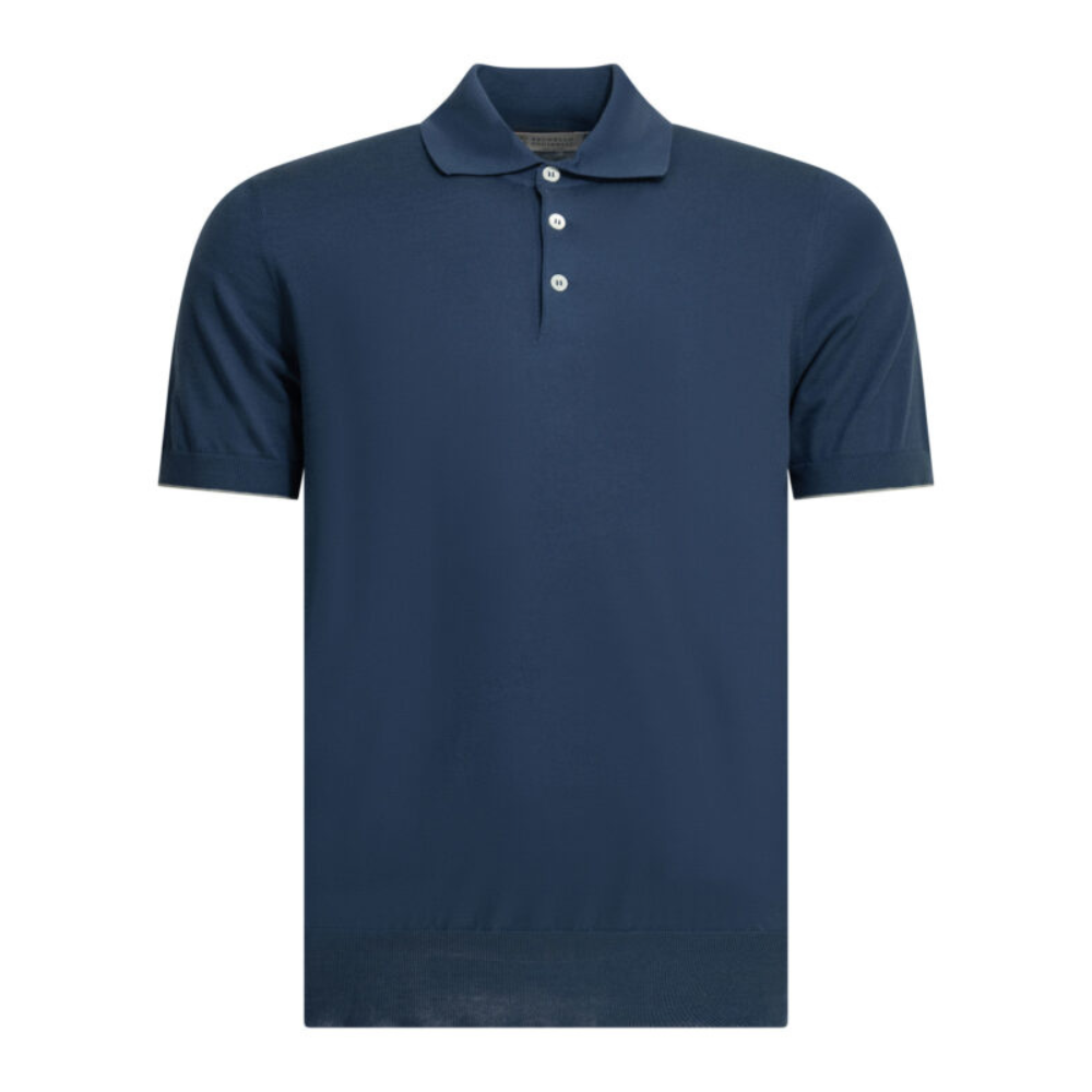 « Brunello cucinelli » polo homme bleu à boutons en maille de coton fine et légère