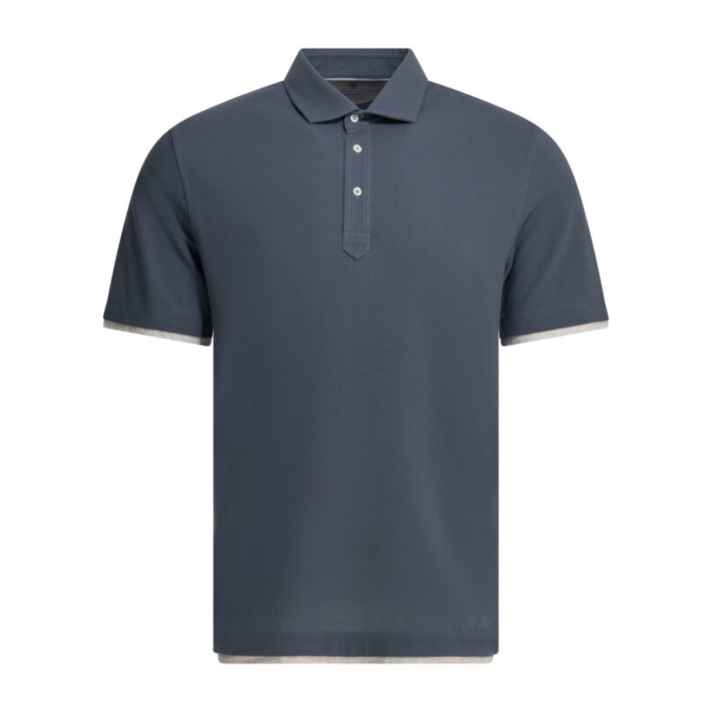 « Brunello cucinelli » polo homme bleu en piqué de coton