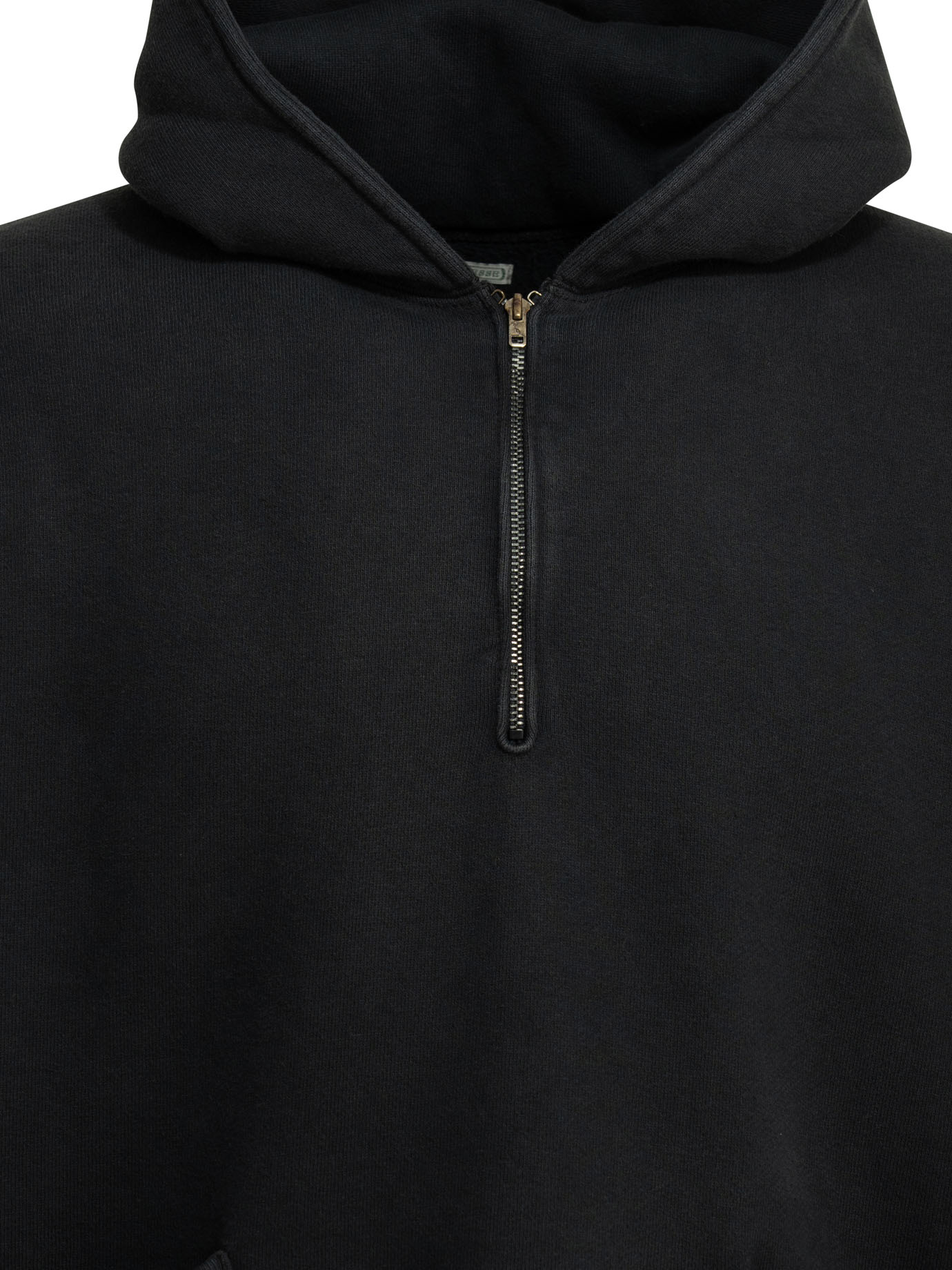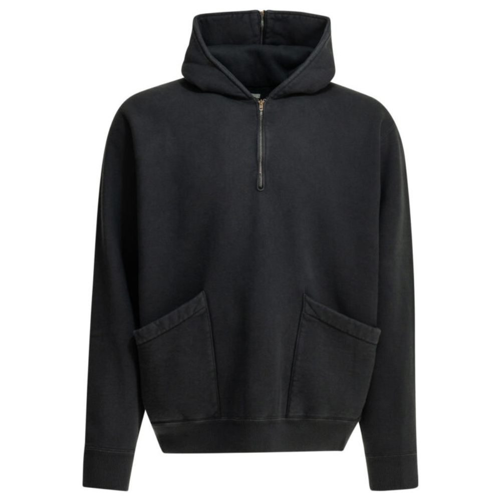 ce sweat-shirt à demi-zip de la maison a.presse pour homme est une pièce de maille haut de gamme conçue pour la saison printemps-été 2026. fabriqué au japon, il est confectionné dans un coton molletonné (plush cotton) de première qualité, offrant une surface compacte et parfaitement uniforme. sa silhouette contemporaine adopte une coupe droite (regular fit) et se distingue par une capuche structurée dotée d’une fermeture éclair frontale permettant d’ajuster l’ouverture du col selon vos besoins. la structure fonctionnelle comprend deux poches plaquées inclinées sur le devant, tandis que les poignets et l’ourlet sont finis par un bord-côte élastiqué pour assurer un maintien stable et confortable. l’arrière du vêtement conserve une ligne sobre et épurée. ce modèle au coloris noir profond incarne le raffinement du design japonais, alliant une construction méticuleuse à un confort quotidien absolu.