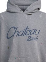 Ce sweat à capuche Gallery Dept. pour homme s’inspire de l’esthétique des années 90 avec une silhouette ample et décontractée. Confectionné en coton, il présente une construction confortable avec capuche intégrée, poignets et ourlet côtelés. Sur le devant, l’inscription « Chateau Ranch » apporte une signature graphique distinctive, tandis que les motifs fer à cheval « Chateau Josué » imprimés sur les coudes renforcent l’identité visuelle du modèle. Chaque pièce est décorée à la main, avec l’appliqué « Art on Display » sur le poignet qui souligne l’approche artistique de la marque.