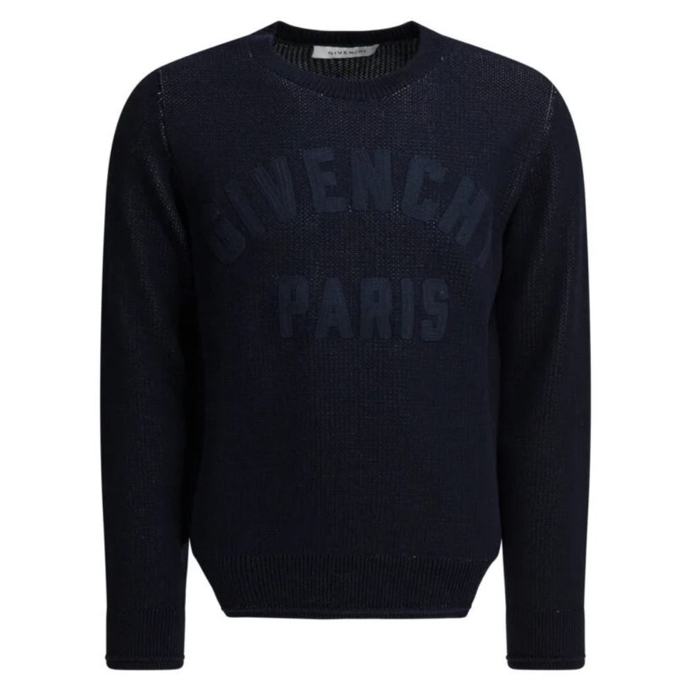 « Givenchy » pull à logo brodé bleu homme coton coupe regular