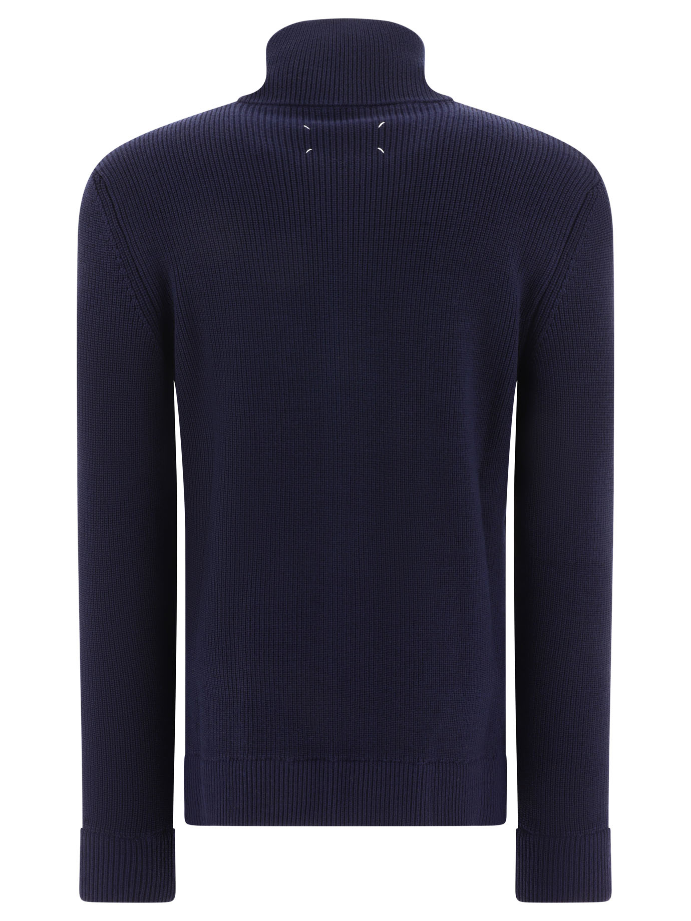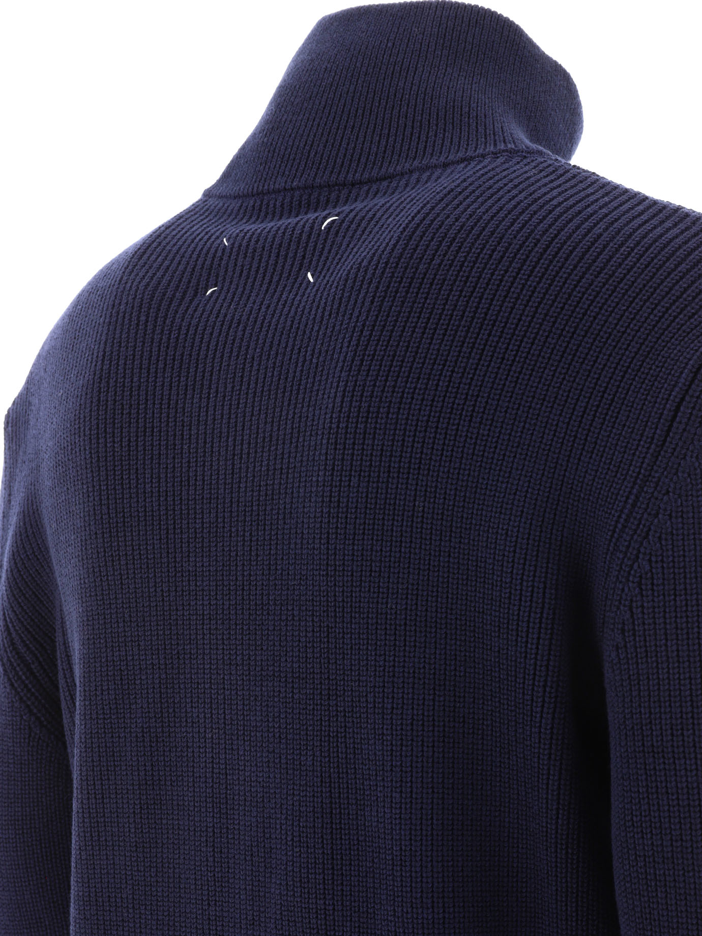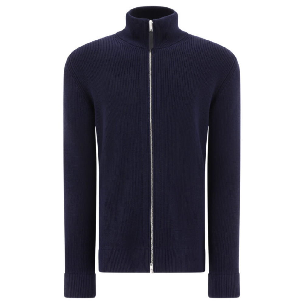 cette pièce de la maison maison margiela pour homme est un vêtement de maille au design structurel et sophistiqué conçu pour la saison printemps-été 2026. fabriquée en italie, elle est confectionnée dans un mélange de coton (60 %) et de laine (40 %) de première qualité, offrant une structure souple, une main douce et une excellente régulation thermique propre aux standards de la haute manufacture italienne maison margiela. sa silhouette se distingue par son tricotage en jersey fin de jauge 7 et sa fermeture éclair intégrale, alliant l’esthétique minimaliste de la griffe à une fonctionnalité idéale pour vos tenues de prestige quotidiennes. le design au coloris bleu présente une construction soignée avec une tirette de zip en cuir, signature du prestige et de l’identité visuelle de la maison margiela axée sur l’hybridation des matières. la structure inclut des finitions côtelées et une ligne régulière, garantissant une silhouette équilibrée, une grande liberté de mouvement et un confort de porter exemplaire. ce modèle allie parfaitement la noblesse des fibres naturelles sélectionnées à une ingénierie de tricotage de luxe, constituant une pièce de collection indispensable pour votre vestiaire de mi-saison.