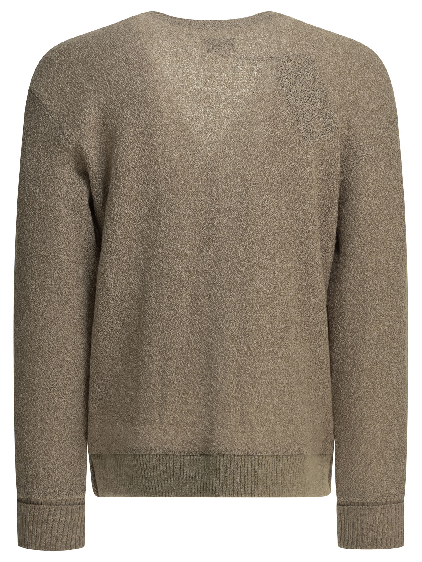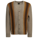 « Needles » cardigan homme beige rayé en mohair avec col en v