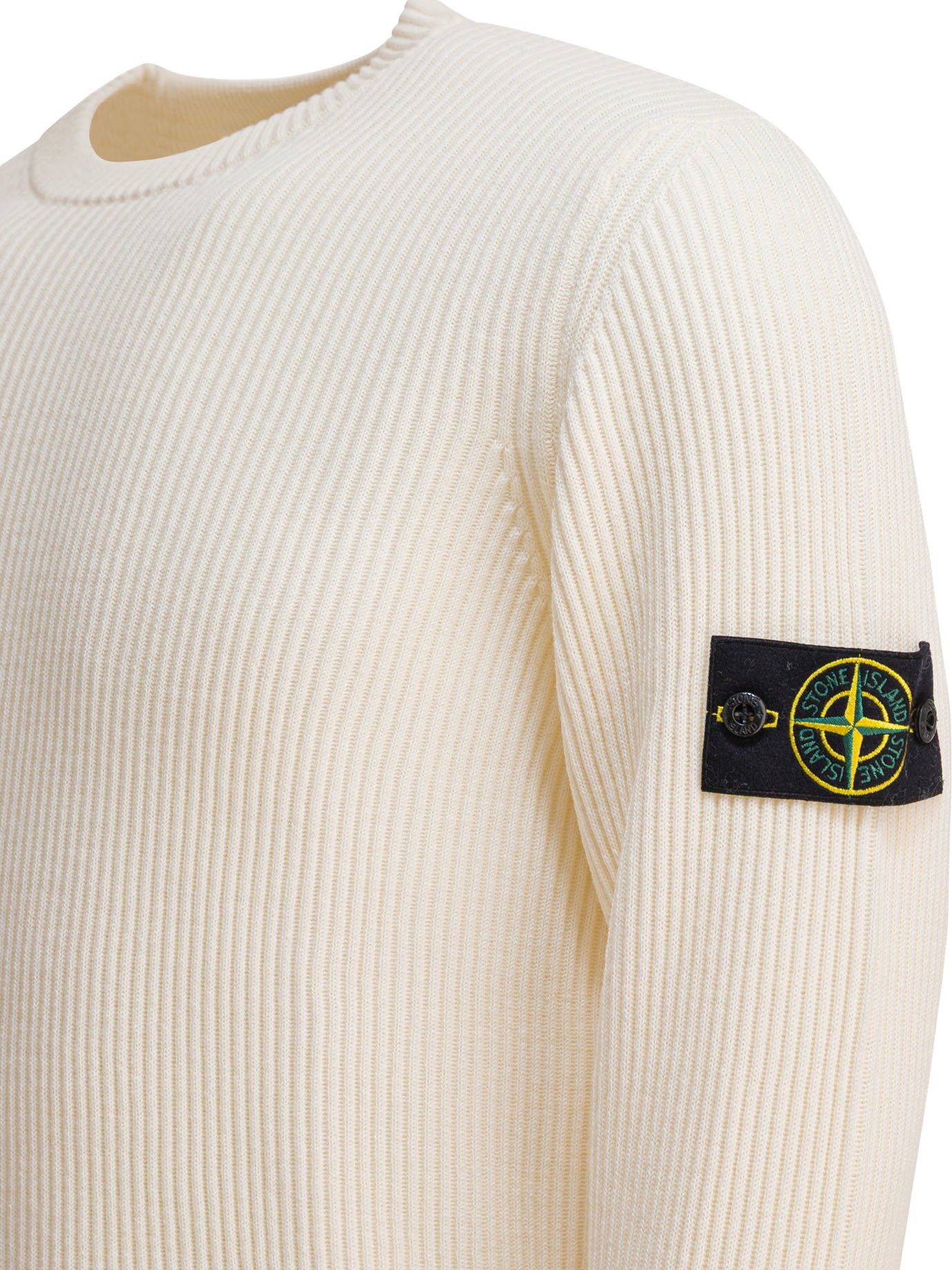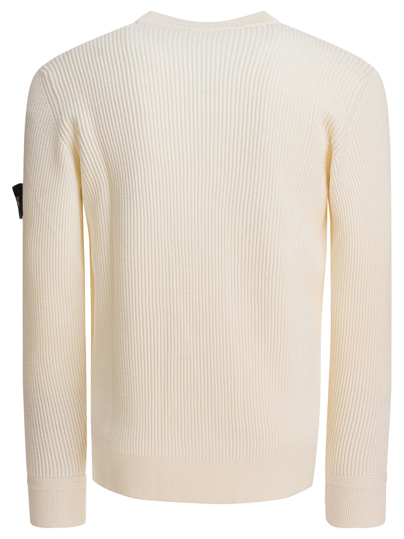 « Stone Island » pull homme blanc laine logo manche coupe regular