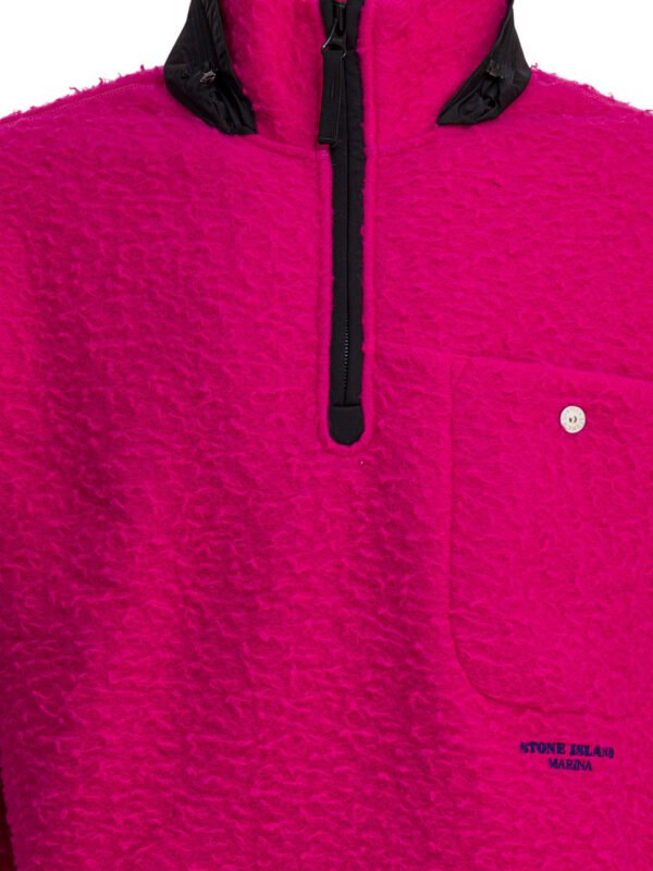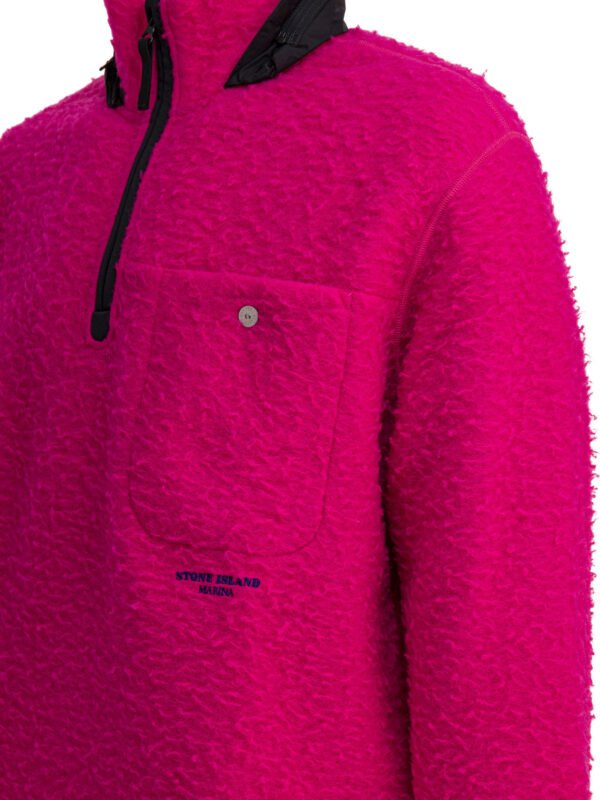 « Stone Island » pull zippé homme fuchsia laine et polyester logo brodé coupe oversize