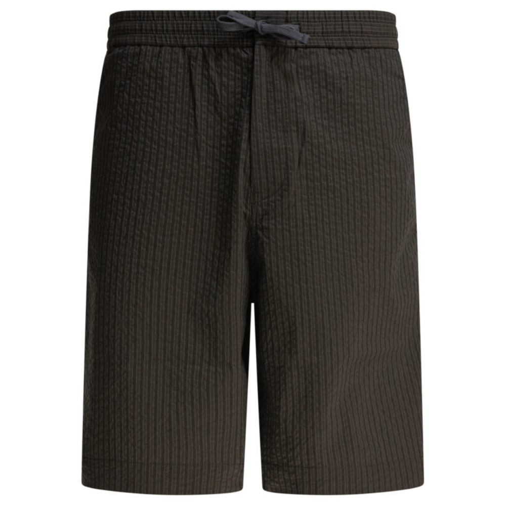 ce short de la maison kitsuné pour homme est une pièce légère et texturée conçue pour la saison printemps-été 2025. confectionné dans un tissu seersucker rayé, il offre une respirabilité naturelle et un relief caractéristique qui limite le contact avec la peau, idéal pour les journées chaudes. sa silhouette présente une coupe régulière à taille haute, dotée d’une ceinture élastiquée ajustable par un cordon de serrage intégré pour un confort sur mesure. la structure comprend une fermeture éclair frontale dissimulée, des poches latérales en biais et une poche plaquée à l’arrière. une étiquette tissée avec le logo de la marque complète le design, soulignant l’attention portée aux finitions et à la construction. fabriqué en roumanie, ce modèle allie l’élégance décontractée et le savoir-faire contemporain propres au label franco-japonais.