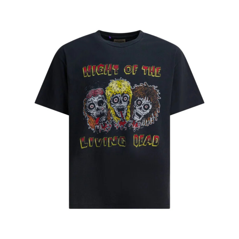 Le t-shirt Night Of The Living Dead Gallery Dept. pour homme s’inspire de l’esthétique vintage des années 90 avec une silhouette décontractée et contemporaine. Confectionné en coton doux, il assure confort et respirabilité au quotidien. Son imprimé graphique frontal emblématique apporte une forte dimension visuelle, tandis que le logo Gallery Dept. appliqué au dos en finition pailletée dorée signe le modèle avec originalité. Une pièce statement idéale pour enrichir un vestiaire streetwear moderne.