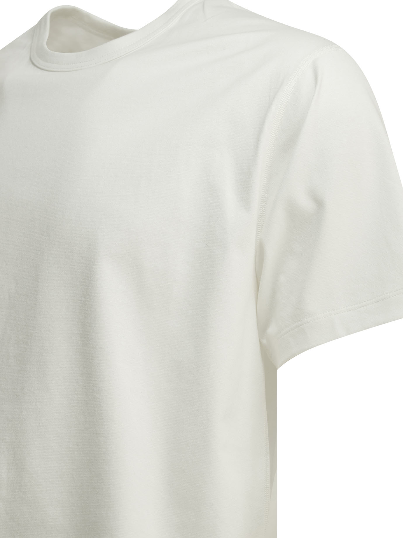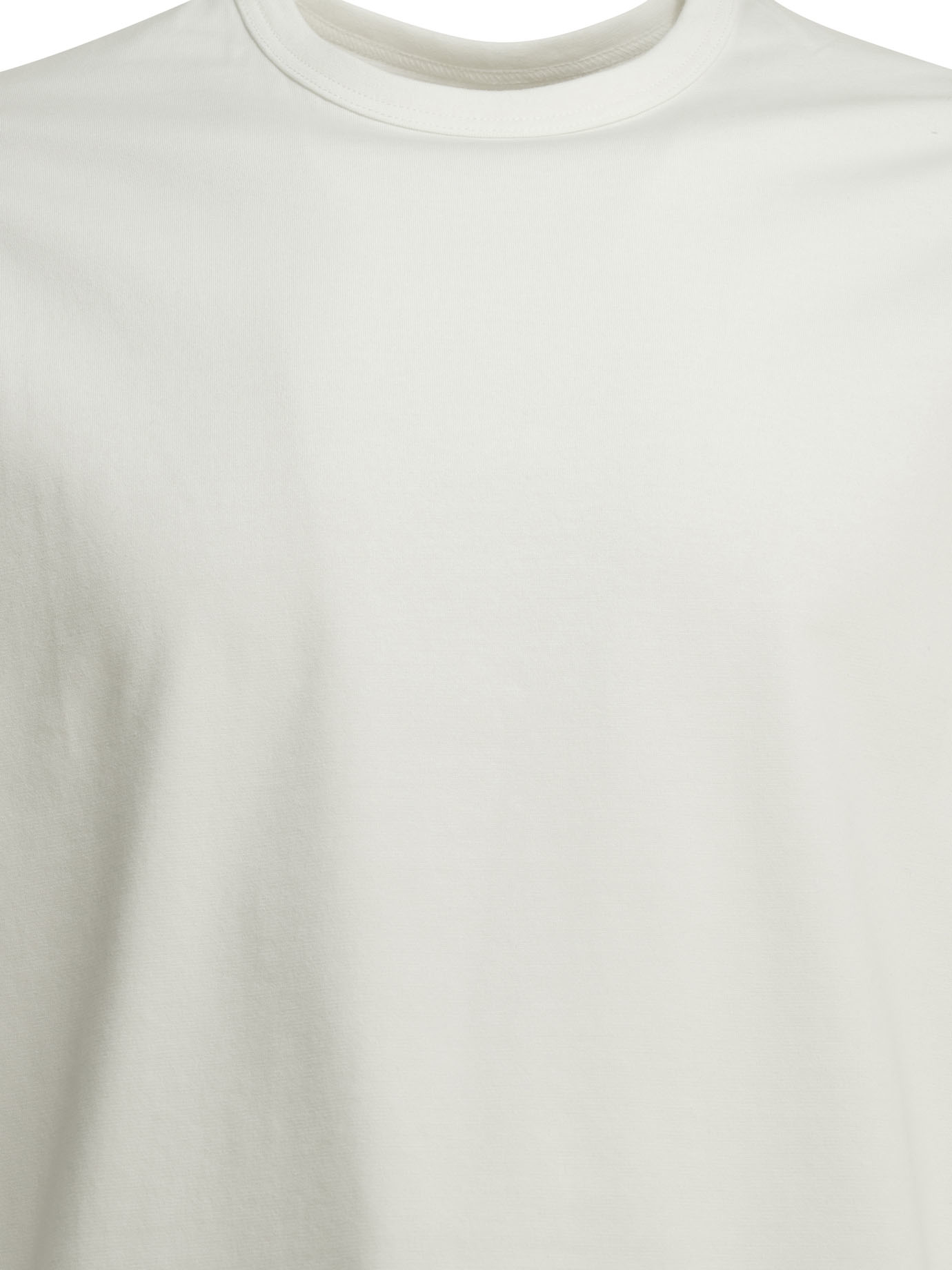 ce t-shirt à col rond de la maison goldwin pour homme est une pièce de prêt-à-porter au design technique et minimaliste conçue pour la saison printemps-été 2026. fabriqué au japon, il est confectionné dans un textile double face de première qualité mêlant le coton organique à fibres extra-longues (71 %) et le polyester (29 %), offrant une structure à double tricotage (double-knit), une texture lisse et une densité de matière propre aux standards de l’ingénierie textile nippone. sa silhouette se distingue par une coupe surdimensionnée (oversized fit) et des demi-manches, alliant l’esthétique contemporaine de la griffe à une allure moderne idéale pour vos tenues de prestige. le design au coloris blanc optique présente une construction soignée intégrant la technologie kodenshi, signature du prestige et de l’innovation de goldwin développée en collaboration avec le dr norinaga shimizu. la structure inclut des fibres de céramique qui émettent des rayons infrarouges lointains pour maintenir la chaleur naturelle du corps, garantissant une régulation thermique optimale et un confort de porter exemplaire en toute saison. ce modèle allie parfaitement la noblesse d’une fibre naturelle d’exception à une ingénierie de bien-être de luxe, constituant un essentiel de haute performance pour votre vestiaire.