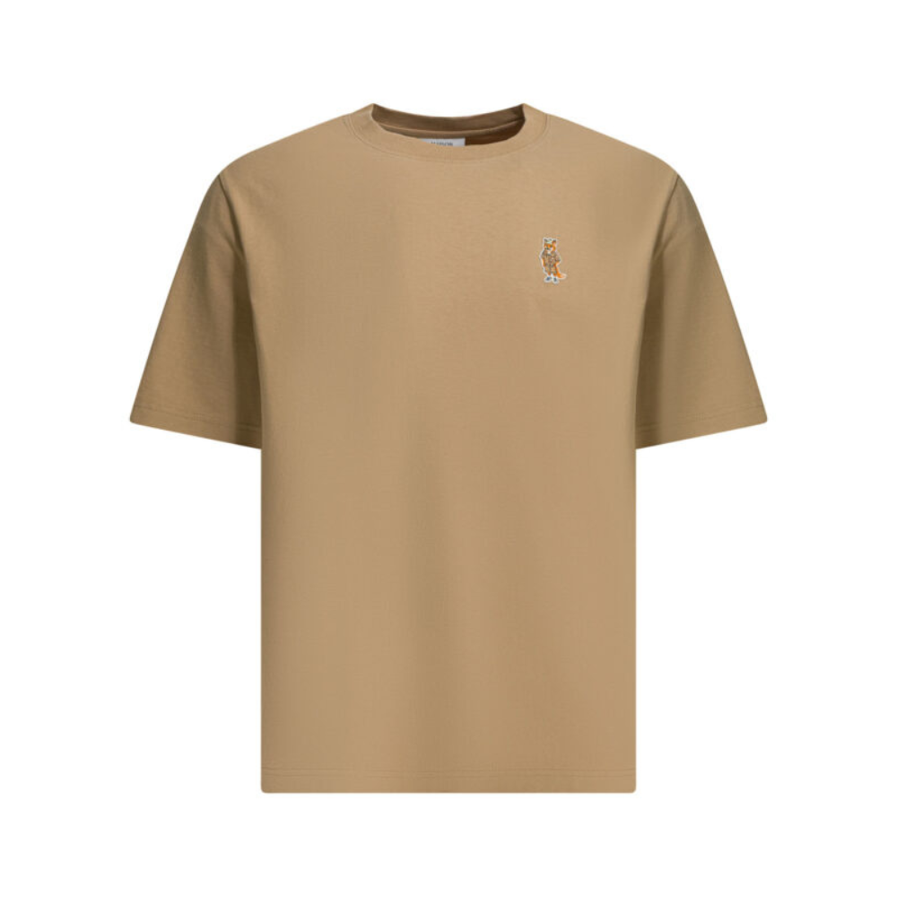 ce t-shirt de la maison kitsuné pour homme est une pièce de prêt-à-porter au luxe décontracté conçue pour la saison printemps-été 2026. fabriqué au portugal, il est intégralement confectionné dans un jersey de coton biologique de 280 grammes, offrant une texture dense, une grande robustesse et un tombé impeccable. sa silhouette se distingue par une coupe ample (relaxed fit) à manches courtes, garantissant un confort supérieur et une allure moderne. le design au coloris beige sable (429) présente un col rond aux finitions côtelées pour une meilleure tenue au fil des lavages. l’élément central de la construction est l’écusson brodé « dressed fox » appliqué sur la poitrine, apportant une touche d’ironie et de reconnaissance immédiate au minimalisme du modèle. ce haut allie parfaitement la qualité des matières durables à l’esthétique nippo-parisienne de la marque, constituant un basique sophistiqué et intemporel pour votre vestiaire de saison.