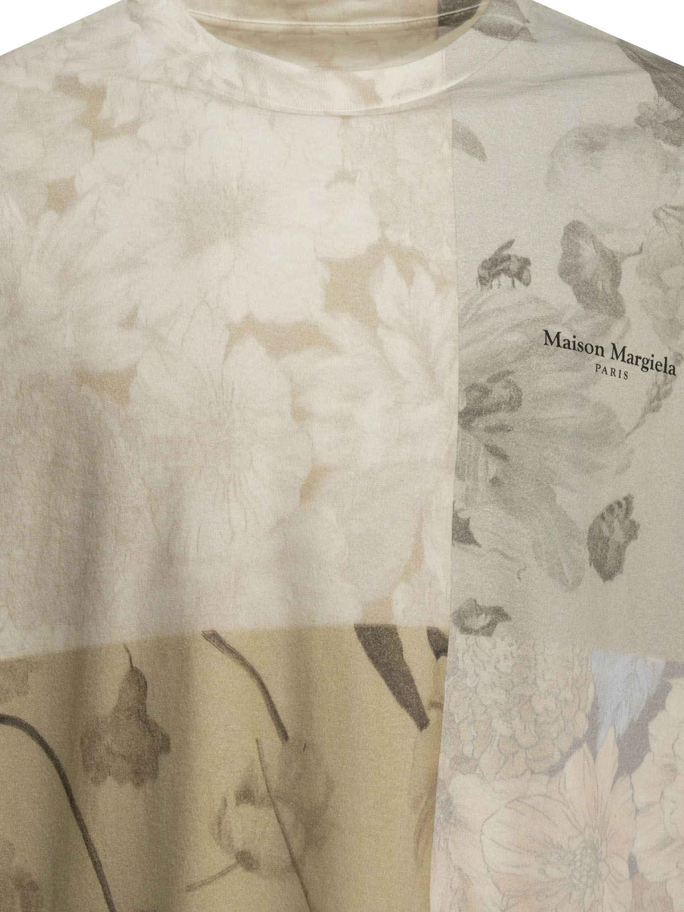 « Maison margiela » t-shirt homme beige floral en coton
