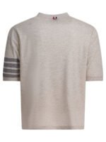 Ce t-shirt Thom Browne 4Bar pour homme revisite le basique avec une confection en maille de laine vierge offrant respirabilité et isolation thermique légère. Sa silhouette droite à manches courtes est enrichie de détails signature, dont les bandes 4Bar sur la manche et les finitions en gros-grain rayé. Les fentes latérales boutonnées apportent fonctionnalité et style, tandis que la texture uniforme de la maille souligne son élégance discrète. Une pièce contemporaine mêlant confort et identité iconique.