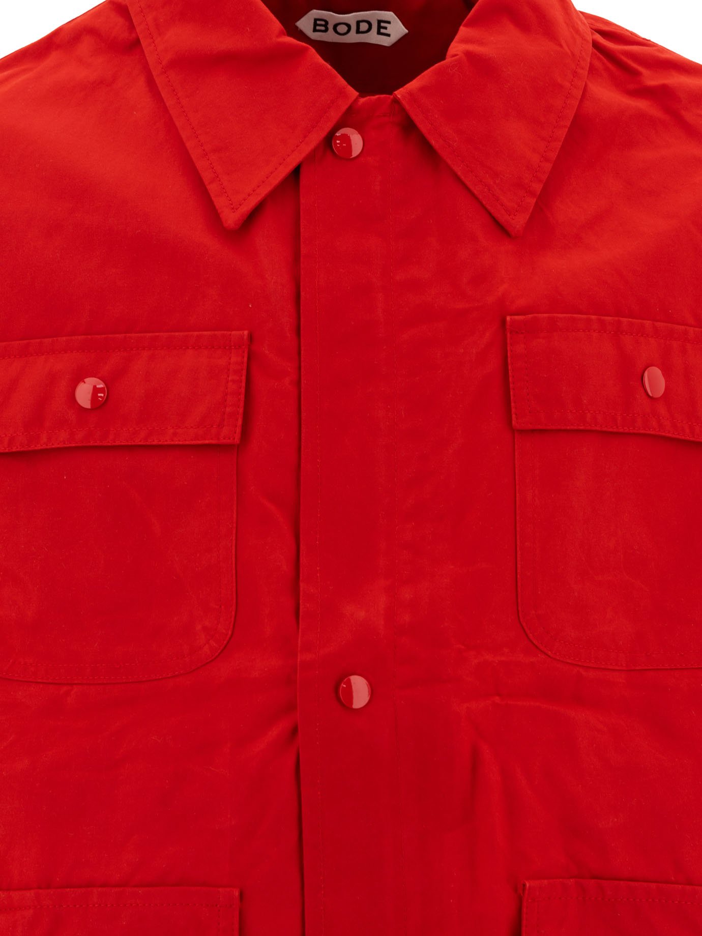 Cette veste en coton signée Bode illustre le savoir-faire artisanal et l’esthétique singulière de la maison. Confectionnée en pur coton, elle allie confort et durabilité tout en affichant un style audacieux. Sa teinte rouge vibrante en fait une pièce de caractère, idéale pour affirmer une allure originale durant la saison automne/hiver.