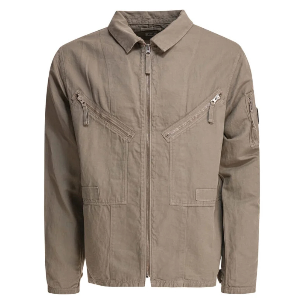 « C.P. Company » surchemise homme beige coton et lin coupe regular
