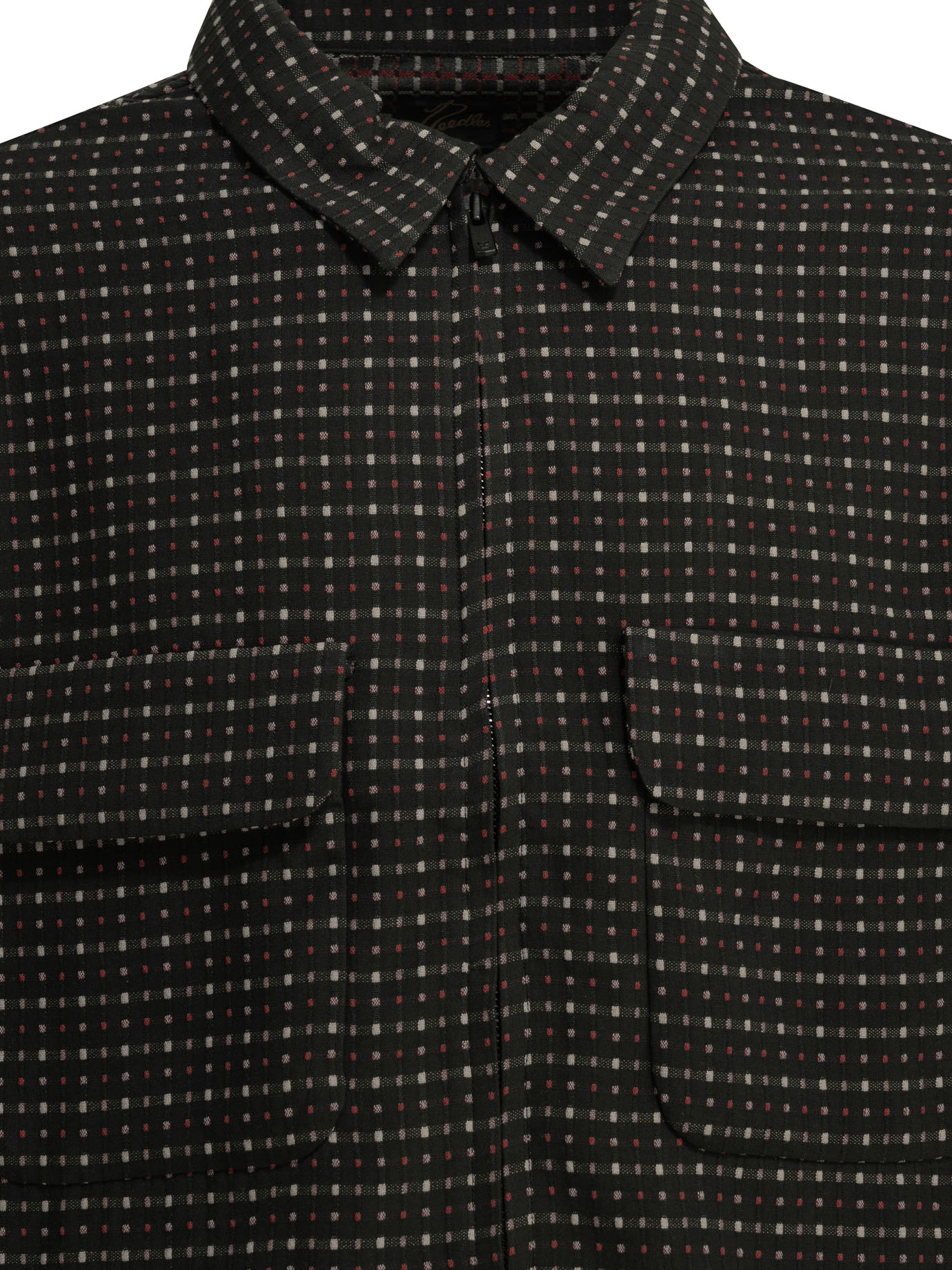 cette pièce de la maison needles pour homme est un vêtement de prêt-à-porter au design architectural et technique conçu pour la saison printemps-été 2026. fabriquée au japon, elle est confectionnée dans un tissu dobby de première qualité associant la rayonne (65 %) et le polyester (35 %), offrant une structure légère, une main texturée et une respirabilité exceptionnelle propre aux standards de la haute manufacture japonaise needles. sa silhouette se distingue par sa coupe boxy et son fini seersucker, alliant l’esthétique avant-garde de la griffe à une fonctionnalité idéale pour vos tenues de prestige quotidiennes. le design au coloris noir présente une construction soignée avec un col généreux, signature du prestige et de l’identité visuelle de needles. la structure inclut une fermeture à glissière intégrale et une ligne droite, garantissant une silhouette équilibrée, une grande liberté de mouvement et un confort de porter exemplaire. ce modèle allie parfaitement la noblesse d’un mélange de fibres sélectionnées à une ingénierie de tissage complexe, constituant une pièce de collection indispensable pour votre vestiaire.