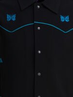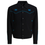 Cette veste Needles revisite l’esthétique western avec une approche contemporaine et structurée. Confectionnée dans un mélange de polyester et polyuréthane noir, elle offre tenue, confort et durabilité pour la saison. Sa silhouette regular à épaules structurées est soulignée par une fermeture boutonnée frontale et des finitions décoratives inspirées de l’univers américain iconique. Le logo Needles brodé sur la poitrine complète cette pièce distinctive, idéale pour un vestiaire casual affirmé et moderne.