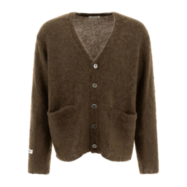 « Undercover » cardigan homme vert kaki en mohair et laine