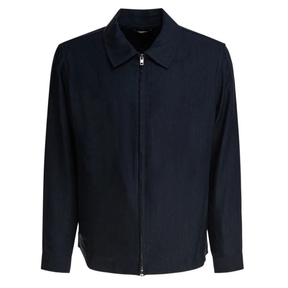 « Vince » blouson homme bleu en lin et viscose à fermeture zippée