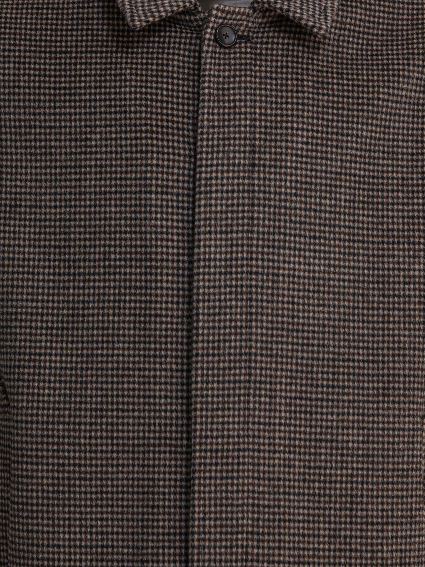 Cette veste Vince pour homme se distingue par son élégance discrète et sa construction structurée. Confectionnée dans un mélange de polyester et de laine recyclée, elle présente une texture agréable et un motif pied-de-poule classique qui apporte profondeur et caractère au modèle. Sa fermeture boutonnée dissimulée et son col classique soulignent une esthétique minimaliste. Les poches latérales intégrées dans la couture complètent cette pièce polyvalente à la coupe regular, idéale pour un style moderne et raffiné.