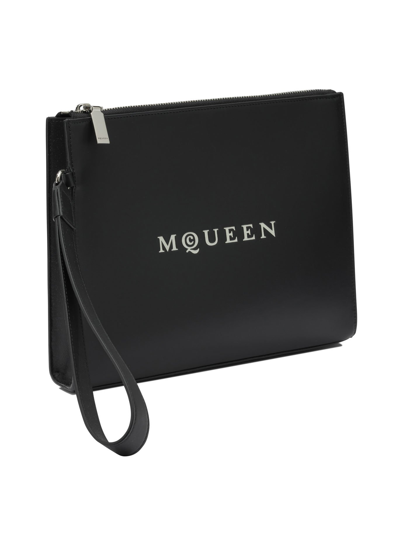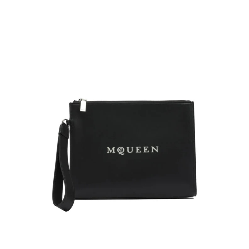 « Alexander McQueen » pochette homme noire cuir