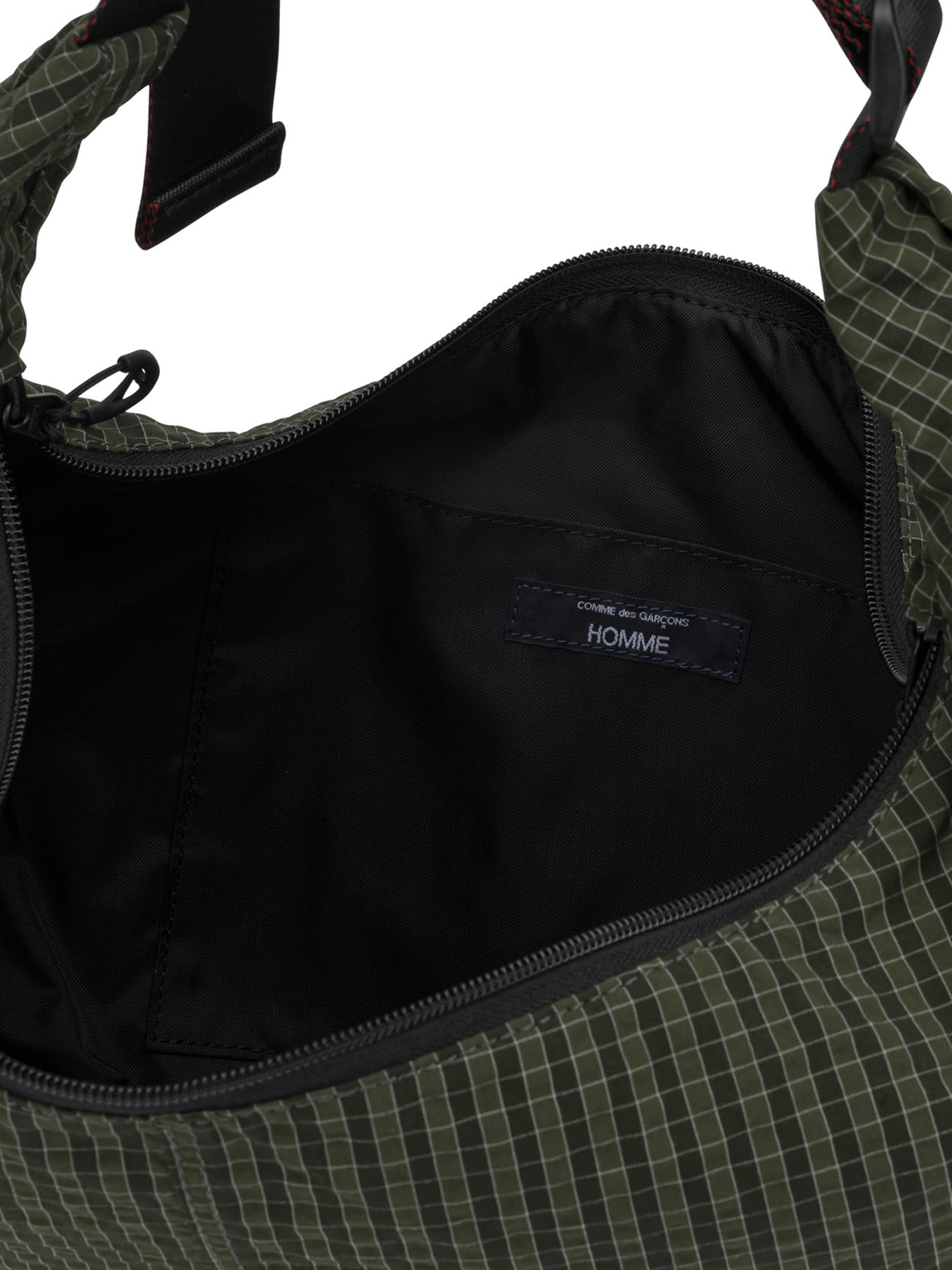 ce sac à bandoulière de la maison comme des garçons homme pour homme est une pièce d’accessoire au design graphique et contemporain conçue pour la saison printemps-été 2026. fabriqué au japon, il est intégralement confectionné dans un textile de polyester de première qualité (100 %), offrant une structure légère, une grande résistance aux froissements et une durabilité propre aux standards d’innovation de la griffe japonaise. sa silhouette se distingue par une ligne courbe (curved silhouette) et un volume généreux, alliant l’esthétique d’avant-garde de la marque à une fonctionnalité urbaine idéale pour vos tenues de prestige. le design au coloris vert kaki présente une construction soignée avec un motif à carreaux quadrillés (grid check) sur toute la surface, signature du prestige et de l’approche géométrique de rei kawakubo. la structure inclut une bandoulière ajustable, une fermeture zippée supérieure et un compartiment intérieur unique sans poches additionnelles, garantissant un profil essentiel et une pureté de forme exemplaire. ce modèle allie parfaitement la noblesse d’une fibre technique à une ingénierie de design minimaliste, constituant un accessoire de luxe pour votre vestiaire.