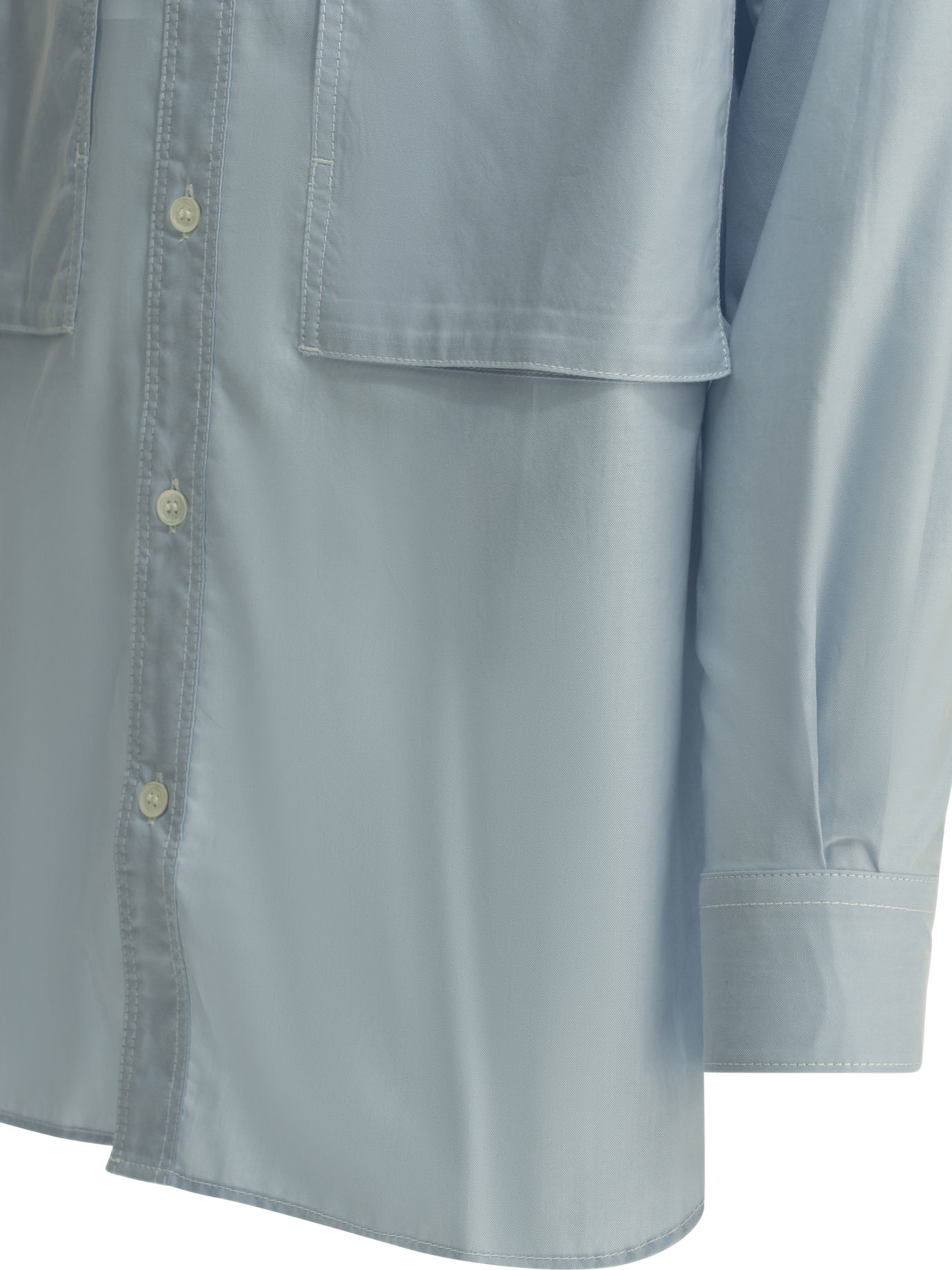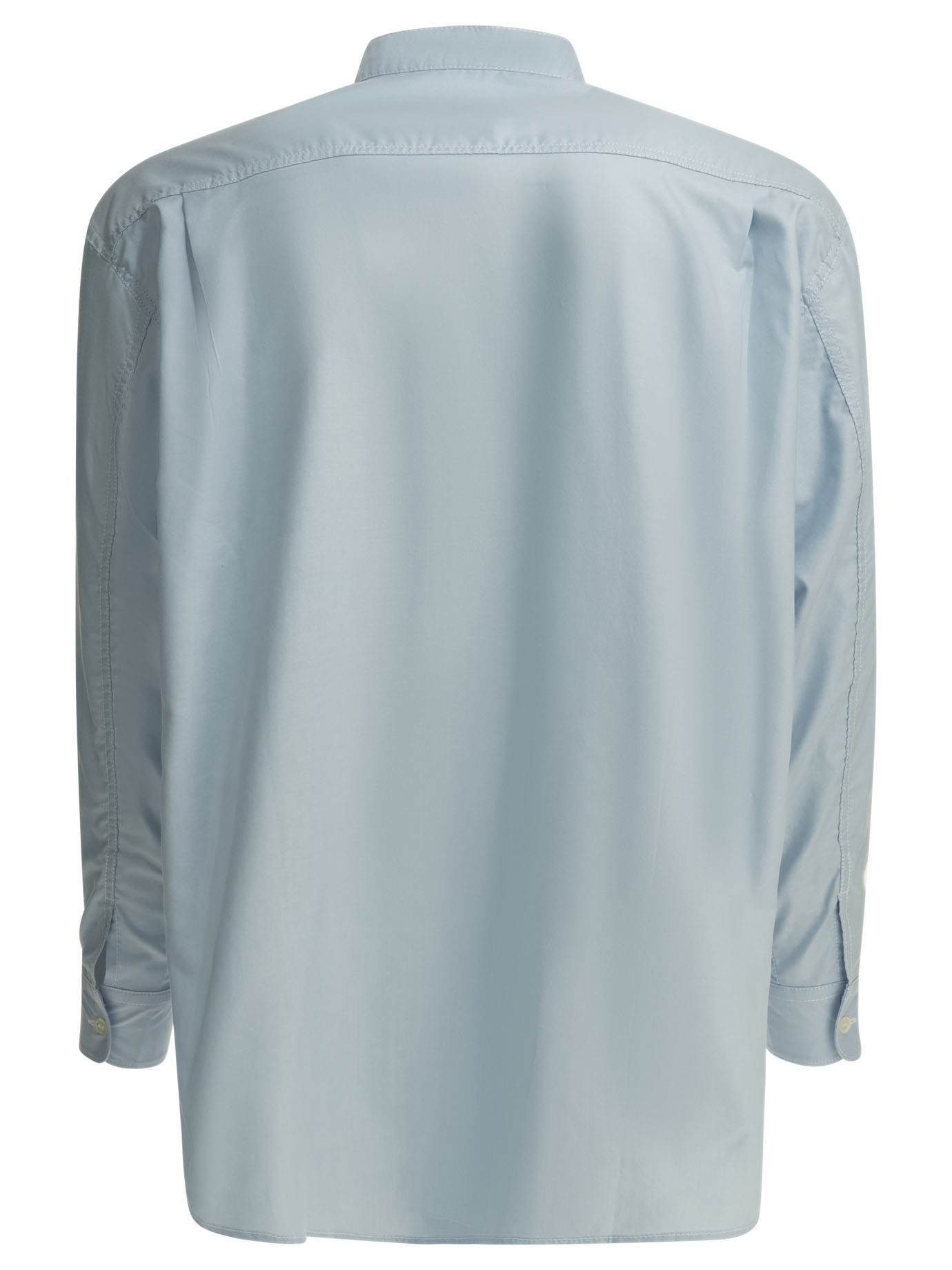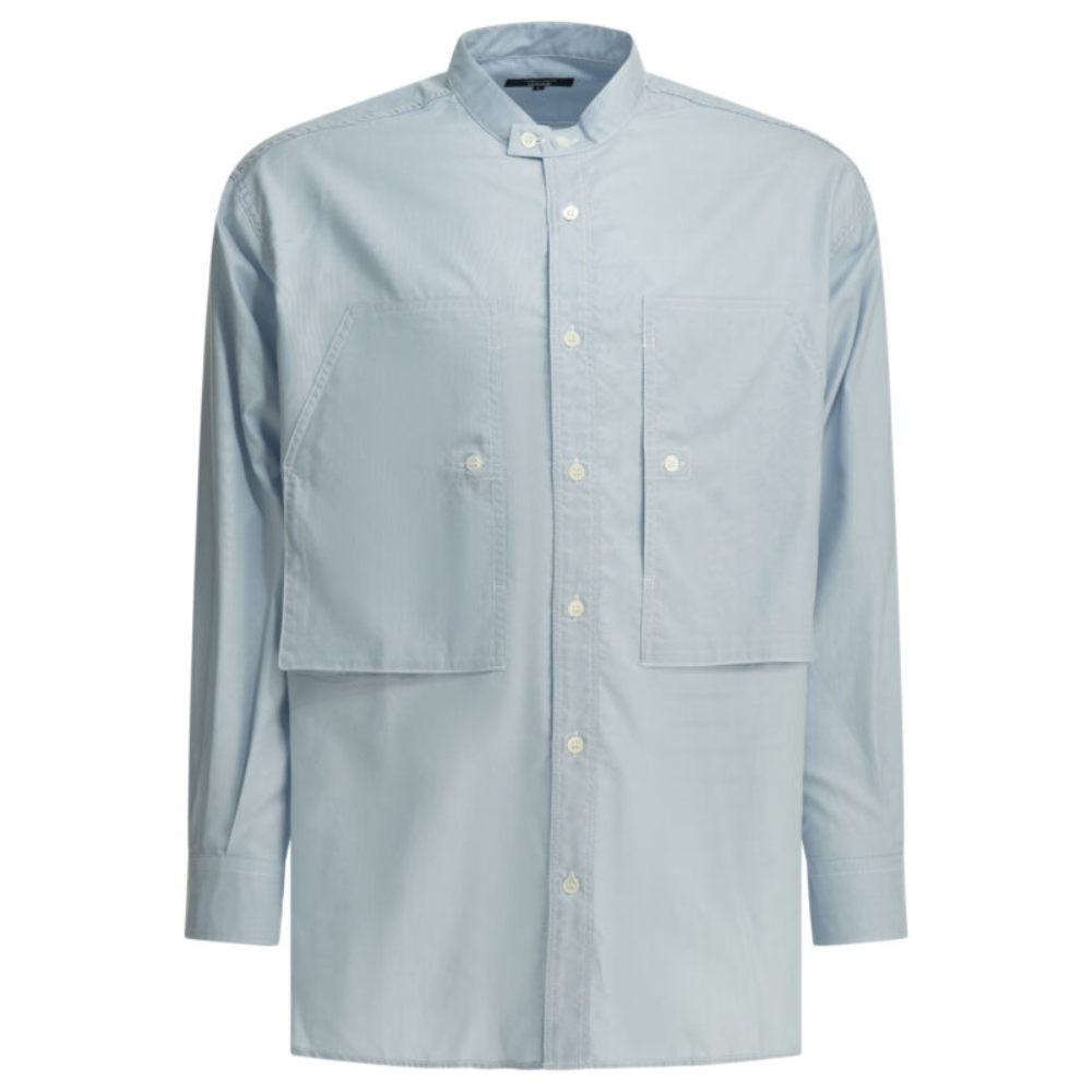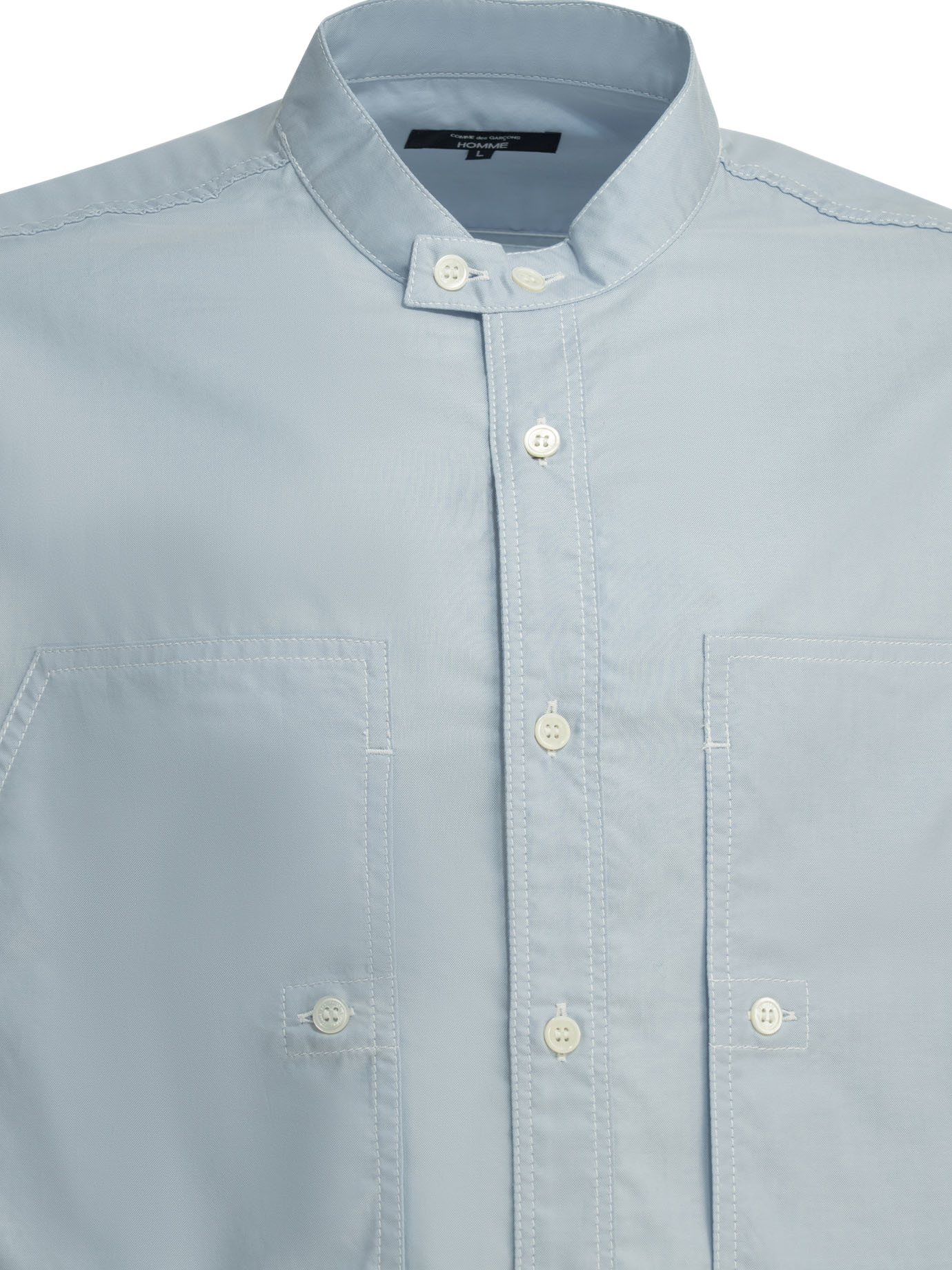 cette chemise décontractée de la maison comme des garçons homme pour homme est une pièce de prêt-à-porter au design épuré et utilitaire conçue pour la saison printemps-été 2026. fabriquée au japon, elle est intégralement confectionnée dans un coton de première qualité (100 %), offrant une structure légère, une grande respirabilité et une douceur naturelle propre aux standards de la haute manufacture nippone. sa silhouette se distingue par une coupe relax (relaxed fit) et une ligne linéaire, alliant l’esthétique minimaliste de la griffe à une allure moderne idéale pour vos tenues de prestige. le design au coloris bleu clair (saxe) présente une construction soignée avec des poches plaquées sur le devant qui apportent un détail fonctionnel et visuel, signature du prestige et de l’approche pragmatique de comme des garçons. la structure inclut un col officier (mandarin collar), des manches longues et une fermeture frontale par boutons, garantissant une fonctionnalité optimale et une finition de couture nette exemplaire. ce modèle allie parfaitement la noblesse d’une fibre naturelle à une ingénierie de coupe fluide, constituant un essentiel de luxe pour votre vestiaire.