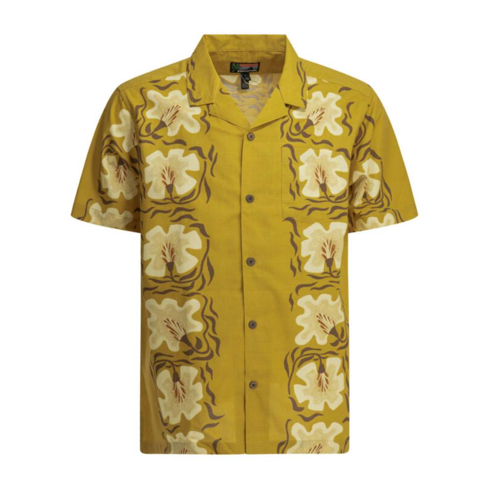 « Patagonia » chemise homme jaune fleurie en coton