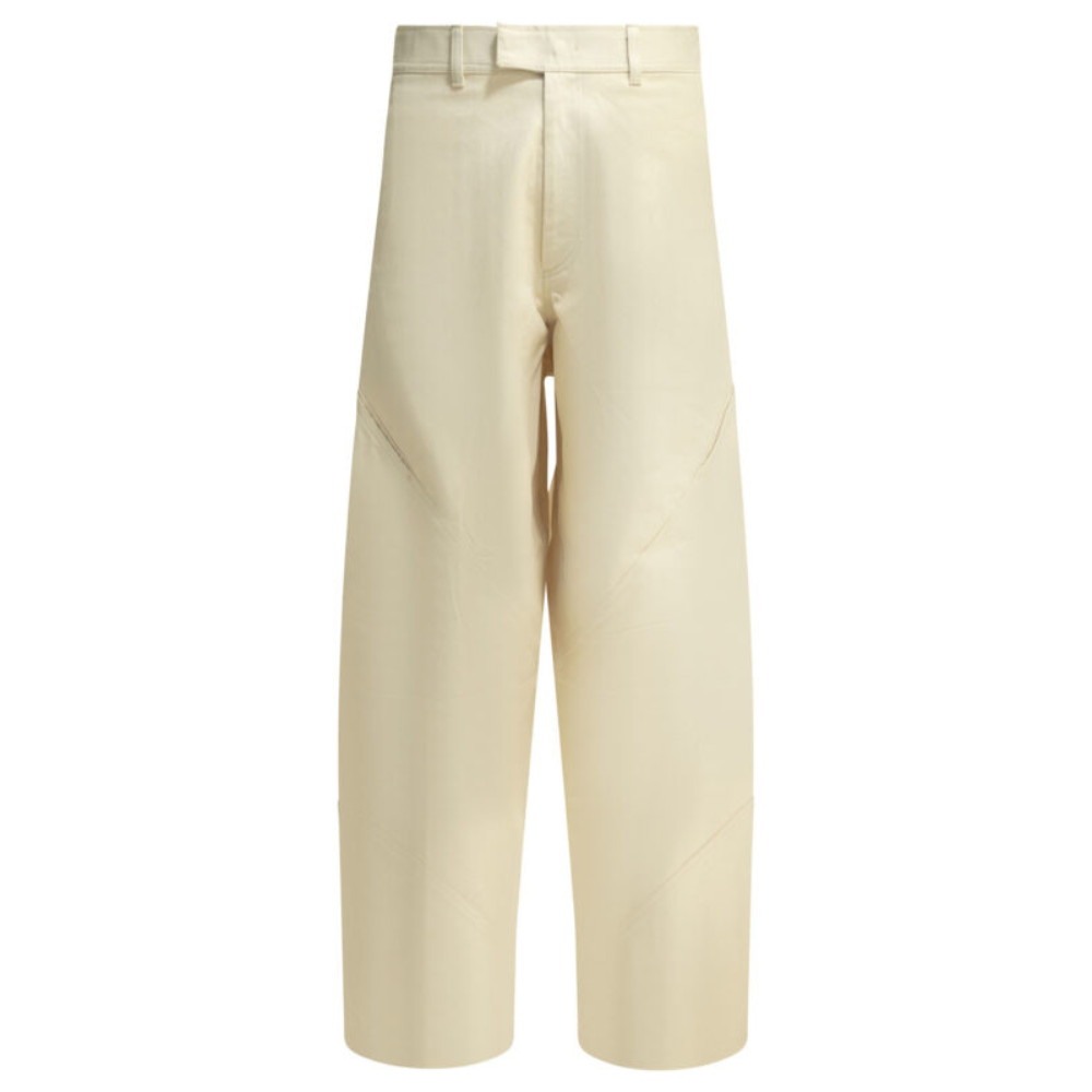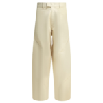 ce jean à jambe large de la maison goldwin 0 pour homme est une pièce de denim au design technique et tridimensionnel conçue pour la saison printemps-été 2026. fabriqué au vietnam, il est intégralement confectionné dans un denim de coton de première qualité (100 %) avec un fini prélavé (single-wash), offrant une structure robuste, une main authentique et une excellente durabilité propre aux standards de la haute manufacture japonaise. sa silhouette « helicoid » se distingue par une construction en spirale brevetée, alliant l’esthétique minimaliste de la griffe à une ingénierie de coupe innovante idéale pour vos tenues de prestige. le design au coloris blanc présente une construction soignée avec une coupe surdimensionnée (oversized fit), signature du prestige et de la vision expérimentale de goldwin 0. la structure inclut une taille mi-haute avec passants intégrés, une poche à outils fonctionnelle positionnée au niveau du genou et des coutures techniques ergonomiques, garantissant une silhouette architecturale, une grande liberté de mouvement et un confort de porter exemplaire. ce modèle allie parfaitement la noblesse d’une fibre naturelle sélectionnée à une ingénierie de construction complexe, constituant une pièce de collection indispensable pour votre vestiaire.