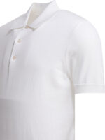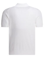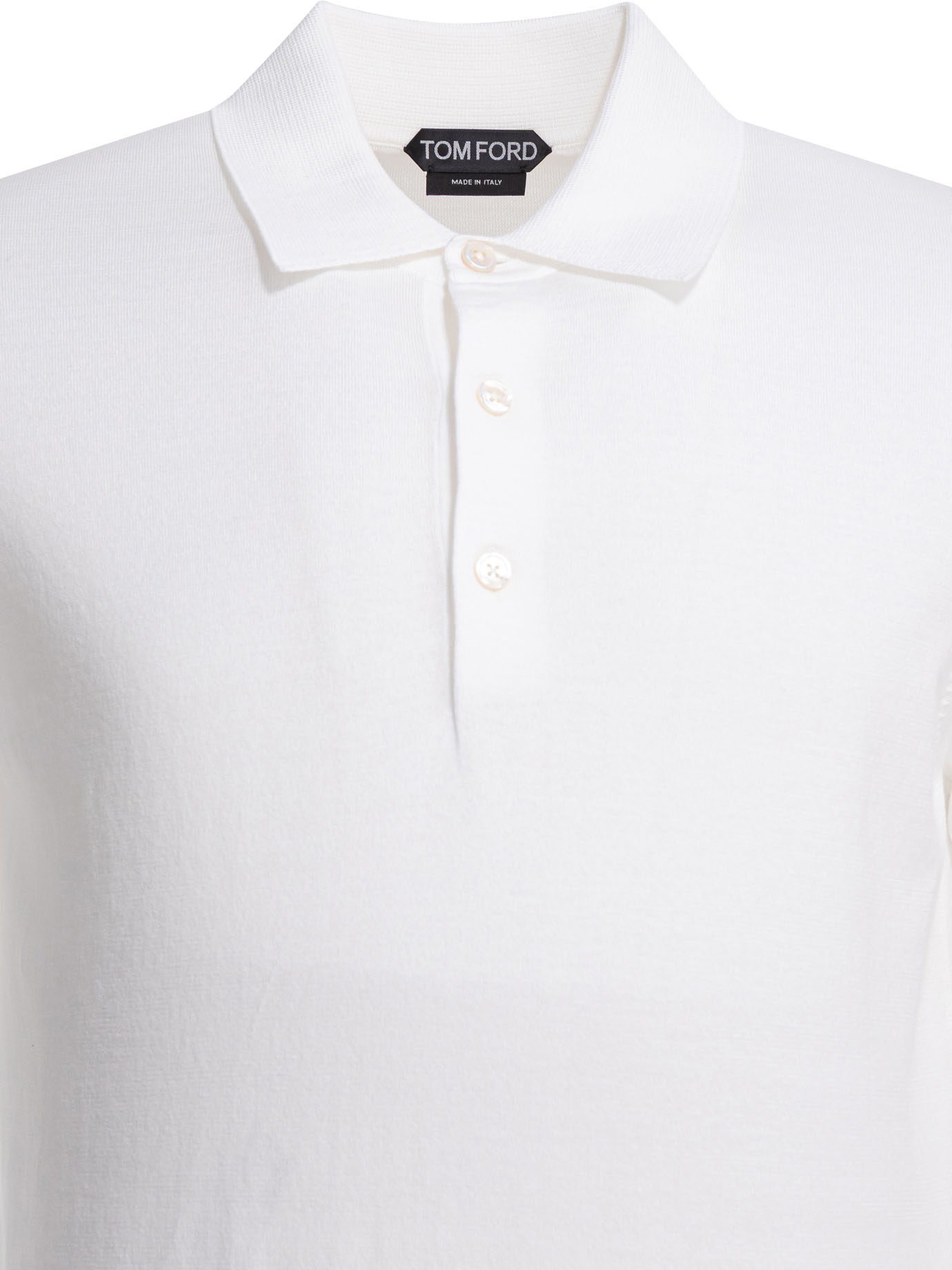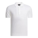 ce polo de la maison tom ford pour homme est une pièce de prêt-à-porter au luxe intemporel conçue pour la saison printemps-été 2026. fabriqué en italie, il est intégralement confectionné dans une maille de pur coton de haute qualité, offrant une surface compacte, régulière et une respirabilité idéale pour les journées chaudes. sa silhouette adopte une coupe droite (regular fit) aux lignes neutres et définies, caractérisée par un col classique et une fermeture frontale boutonnée. le design au coloris blanc optique (wab) se distingue par l’utilisation de boutons en nacre véritable, apportant une brillance discrète et une finition prestigieuse au modèle. la construction soignée inclut des finitions côtelées au bas du vêtement et aux emmanchures, garantissant une excellente stabilité de la forme et une tenue irréprochable. ce modèle aux manches courtes allie parfaitement le raffinement de la maille italienne à une élégance décontractée et souveraine.