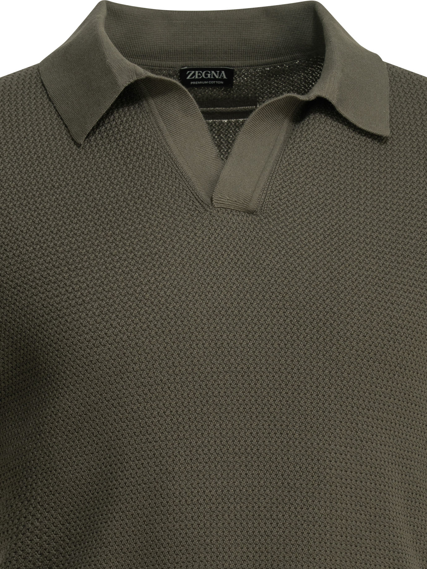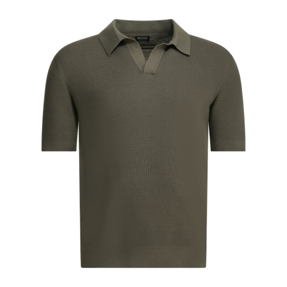 « Zegna » polo homme vert en maille jacquard fine de coton