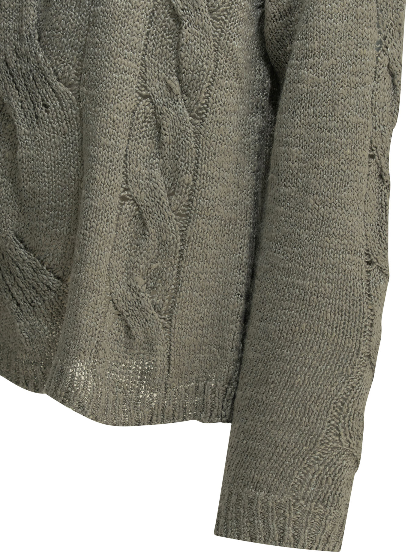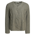 ce pull de la maison our legacy pour homme est une pièce de maille d’exception conçue pour la saison printemps-été 2026. fabriqué au portugal dans un mélange précieux de chanvre italien et de soie rustique, il présente une texture compacte à la surface naturelle et authentique. sa silhouette se distingue par un travail de maxi torsades sur le devant et un col en v profond, offrant un relief visuel unique. la construction comprend des manches longues à coupe sellier allongée, ainsi qu’un col, des poignets et un ourlet côtelés. grâce aux caractéristiques d’élasticité naturelle du fil sélectionné, la structure accompagne et s’adapte aux mouvements du corps. ce modèle allie parfaitement l’esthétique brute des matières naturelles à une coupe décontractée et sophistiquée, fidèle à l’approche expérimentale du label suédois.