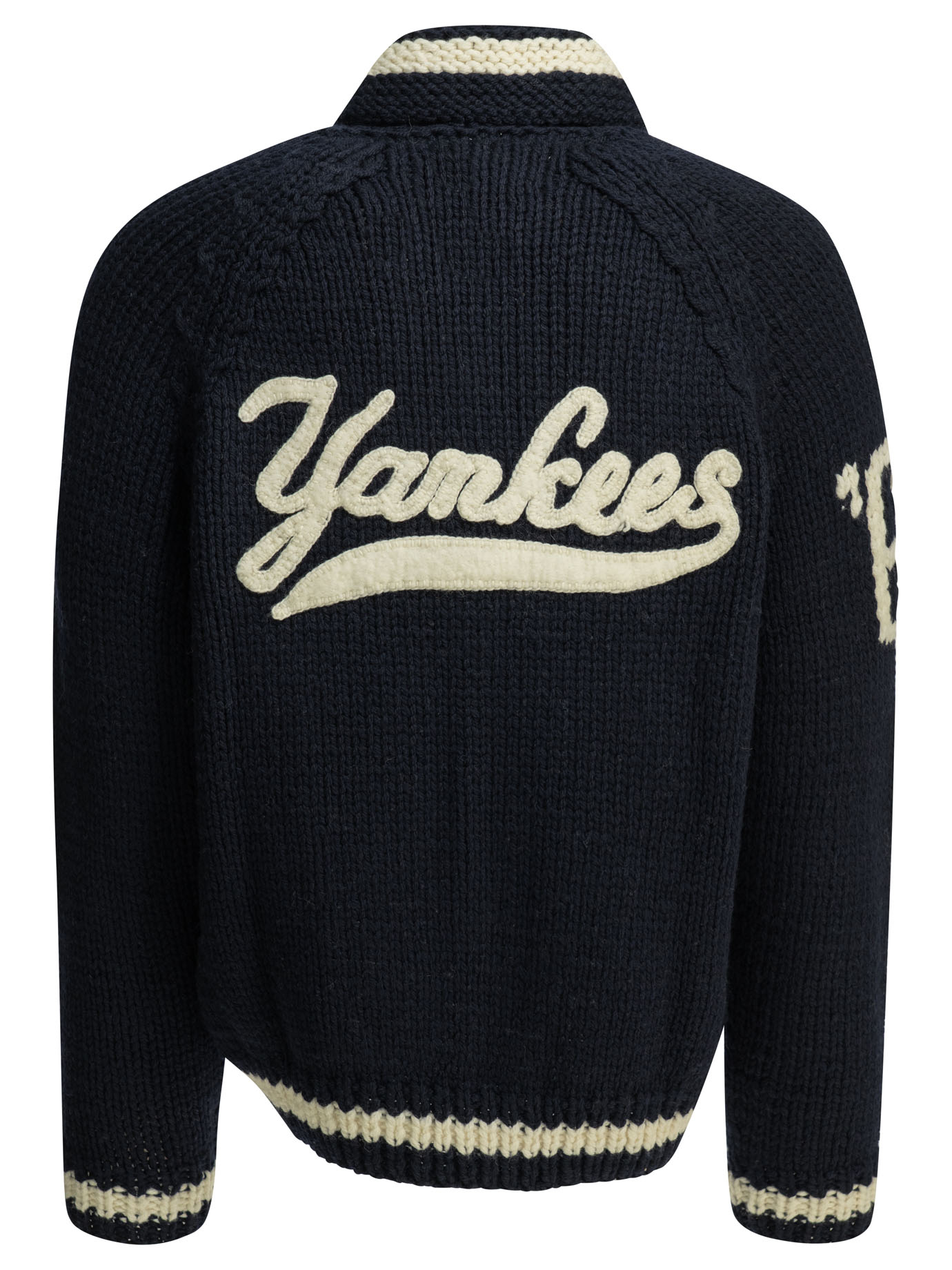 caractéristique spéciale : lettrage « yankees » travaillé en intarsia au dos et logo de l’équipe sur la poitrine gauche