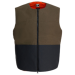 ce gilet sans manches de la maison gr10k pour homme est une pièce de prêt-à-porter utilitaire et structurée conçue pour la saison automne-hiver 2025. fabriqué en italie, il est confectionné dans une toile de pur coton robuste, complétée par un rembourrage intérieur intégral en polyester pour une isolation thermique optimale. sa silhouette adopte une coupe droite (regular fit) avec une encolure ronde nette (crew neck) et un profil sans manches, offrant une grande liberté de mouvement et une facilité de superposition. la structure se distingue par une fermeture éclair centrale sur toute la longueur et des empiècements structurels insérés sur le corps, renforçant la stabilité et la performance technique du vêtement. le design privilégie des lignes essentielles et des matériaux compacts, caractéristiques de l’esthétique industrielle et fonctionnelle de la marque. ce modèle au coloris marron terreux (de10) allie parfaitement la résistance du vêtement de travail à une sophistication urbaine contemporaine.