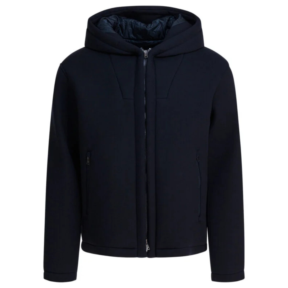 La veste Herno pour homme associe technicité et élégance contemporaine. Confectionnée dans un tissu technique trois couches à base de viscose, elle présente une structure compacte et une finition déperlante idéale pour affronter les intempéries légères. Sa capuche intégrée et son rembourrage léger offrent confort et protection pour la saison froide. La fermeture zippée à double curseur et les poches latérales zippées apportent fonctionnalité et modernité. Sa silhouette à la coupe relaxed confère une allure contemporaine et décontractée.